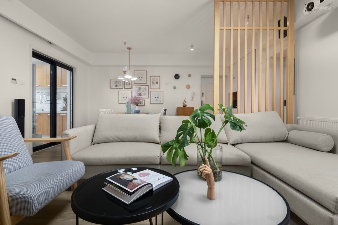 进门后在沙发后面做了一个实木隔断,对于空间的连贯性和门厅的采光不会有影响,同时又起到玄关遮挡的效果。