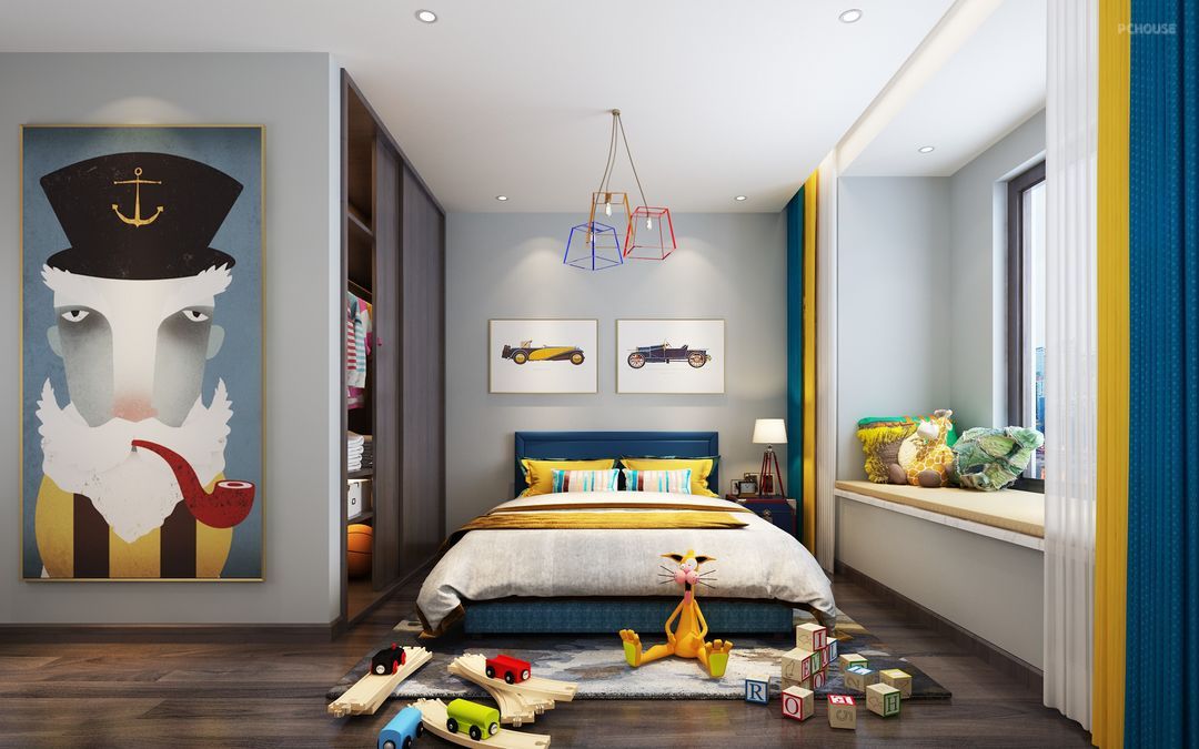 走入次卧,空间重新定义平静。“去繁从简,自然之美”自然而然流露出来,宁少勿多,宁缺毋滥。在房间里采用简洁纯粹的蓝色调壁纸,海派风情展现舒缓的生活氛围。整体色调沉静稳重,宁静怡人。卧室是人的依赖,在此享受生活与自然共生即可。