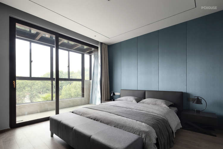 放弃使用传统手法的窗帘盒及窗帘的做法,画面更纯净,使得室内空间与室外庭院的美景更能无缝对接。