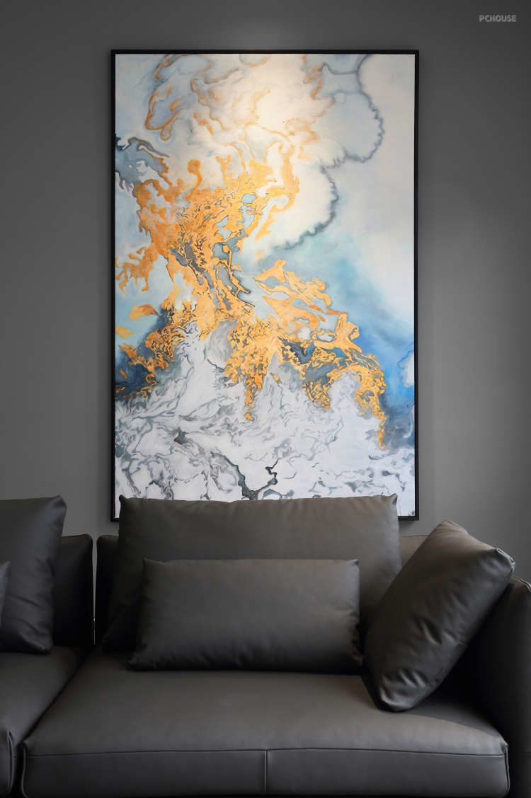 鹅黄色单椅及户外吊椅的设置,使得空间产生了很有趣的变化,室内与室外,布艺的实与铁艺的虚,金属的刚与布艺的柔,通过大面落地玻璃的设置,得到了完美对比和体现。