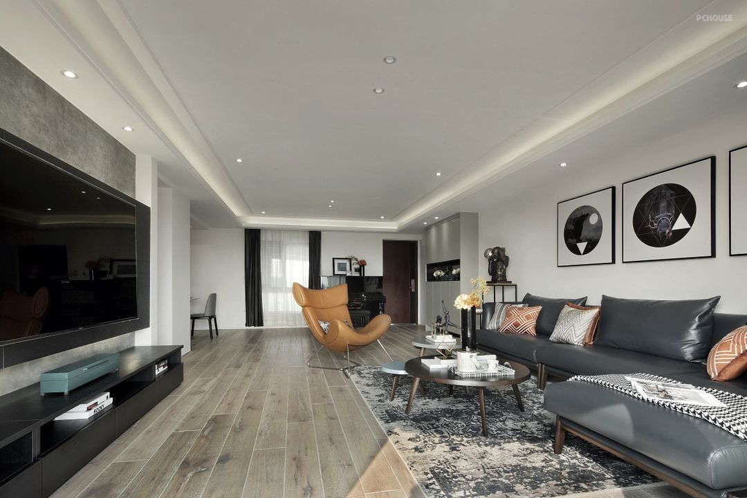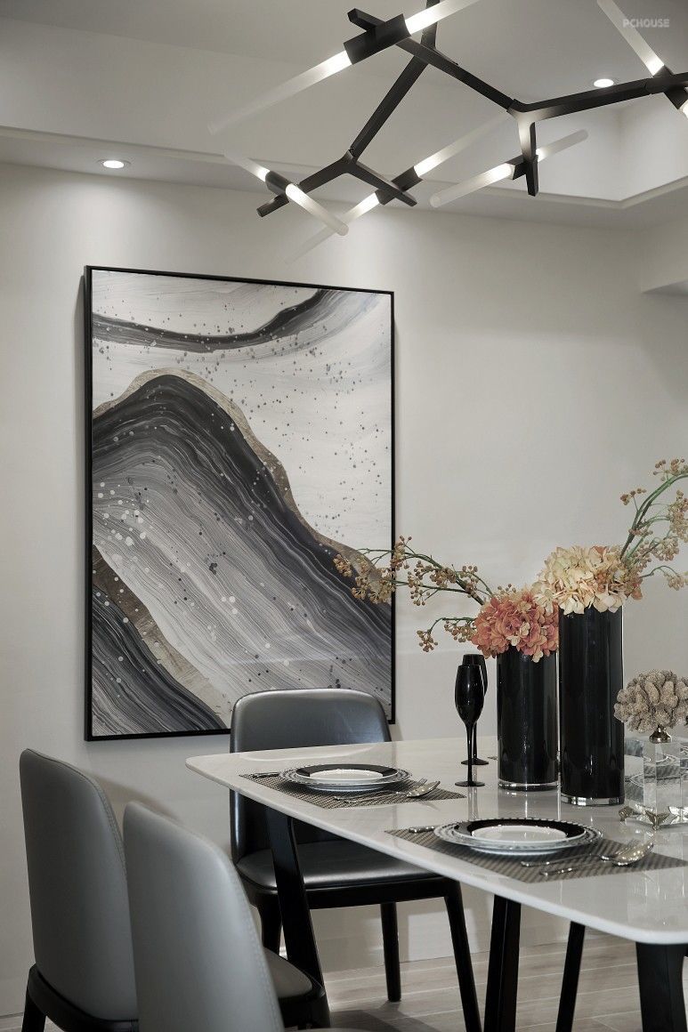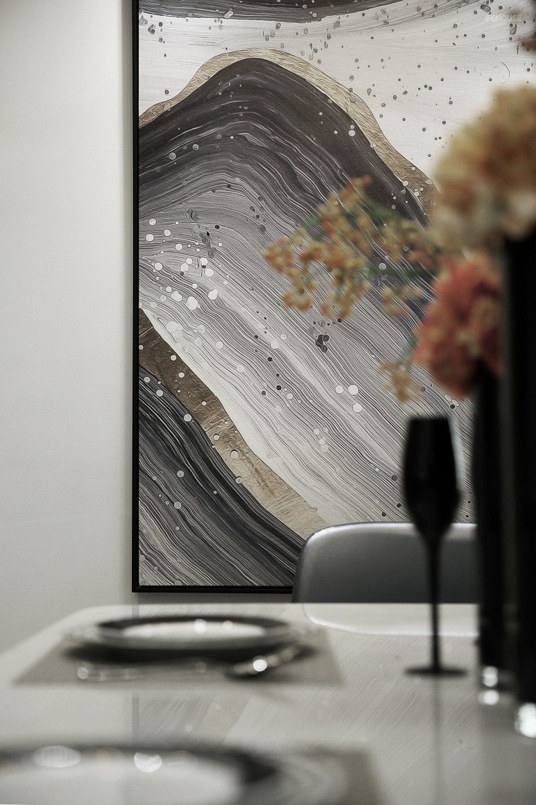 灰色系作为空间的主色调,搭配极富质感的当代艺术陈设架构出空间的精致与内敛,将冷静而理性的格局重新演绎。