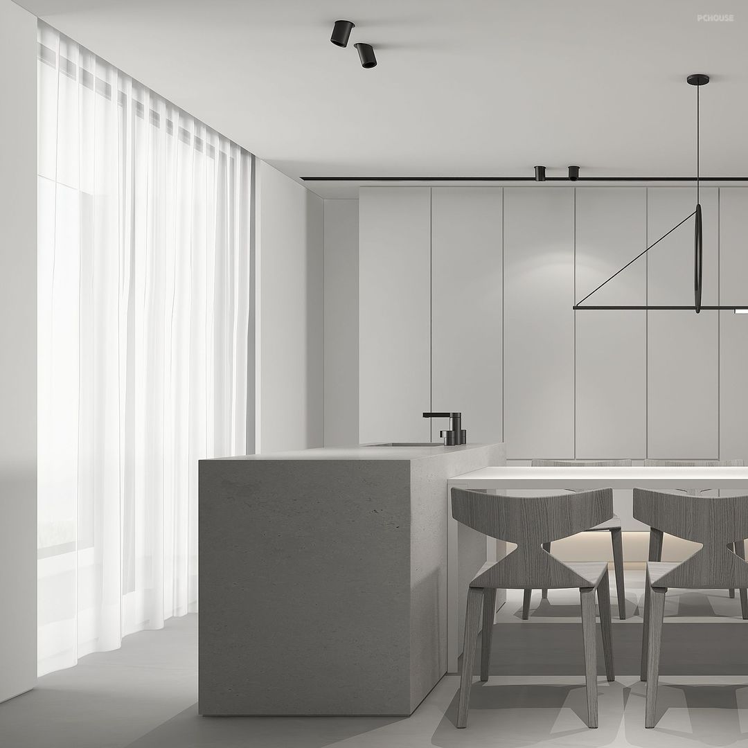 前言: 设计师延续以往风格,舍弃繁复无用的画笔,以干净的白墙、凝练的线条组成空间画布,让极简主义贯穿作品。在这里,生活才是真正的主角。