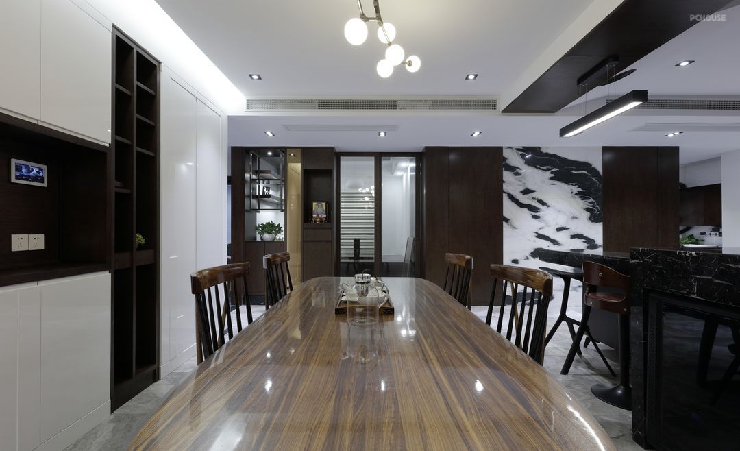同时,为了增加储藏功能,全屋采用了大量的整木定制家具设计,全屋采用智能设备,保证了业主对居住便捷与安全的追求,提高居住的品质。