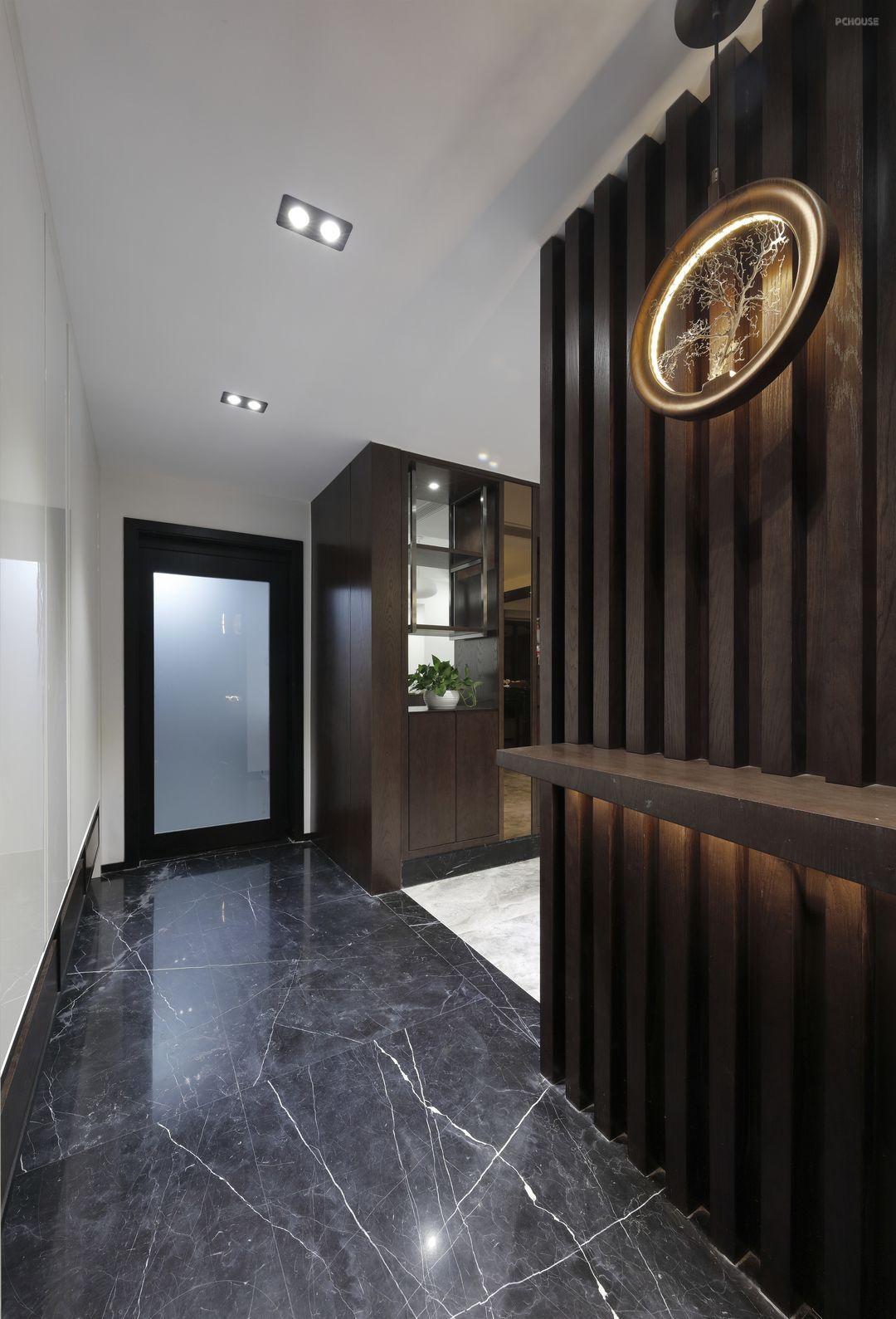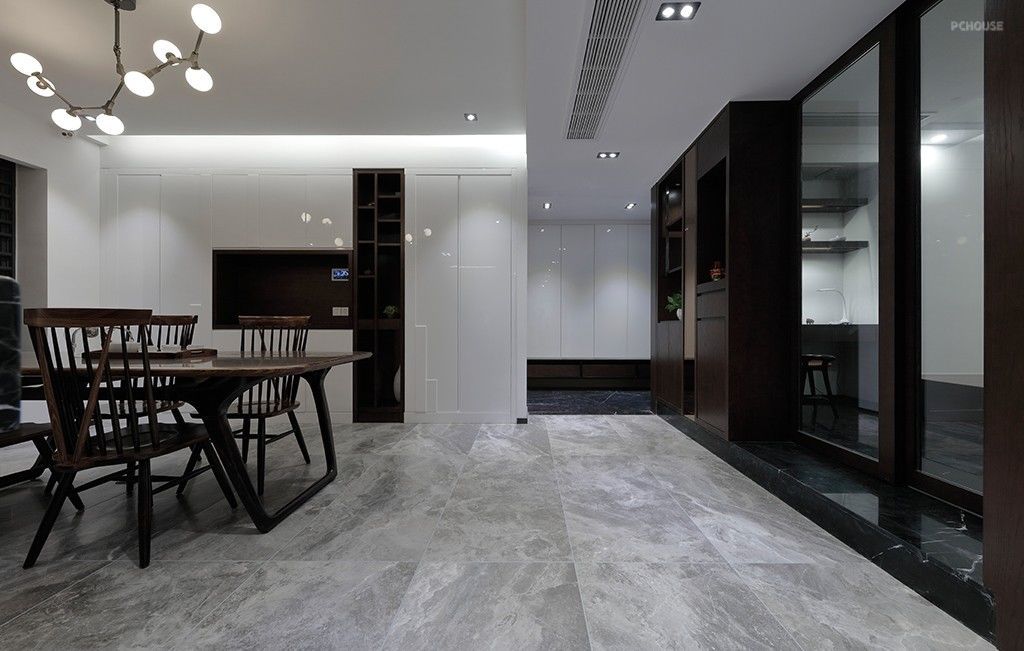 在空间布局上讲究层次功能区分,入户采用简约木栅栏隔断,巧妙区分空间,在现代的格局中也能看到中国人善于藏的智慧;