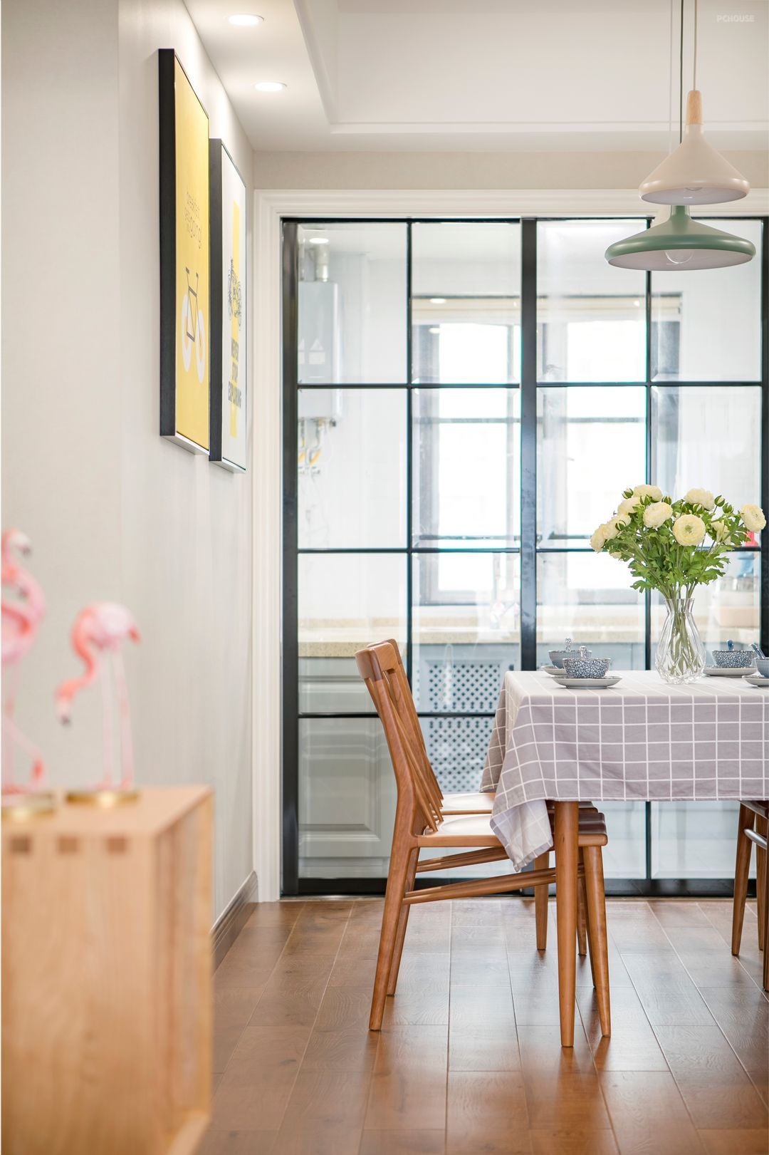 前言: 本案是一套面积为89平的清新北欧风三室,简洁大方的硬装,让原本不大的房子看上去宽敞通透,精致时尚的软装是本案的重点,使用了很多流行的装饰元素,最吸引眼球的就是火烈鸟装饰画和摆件,整体清新唯美。