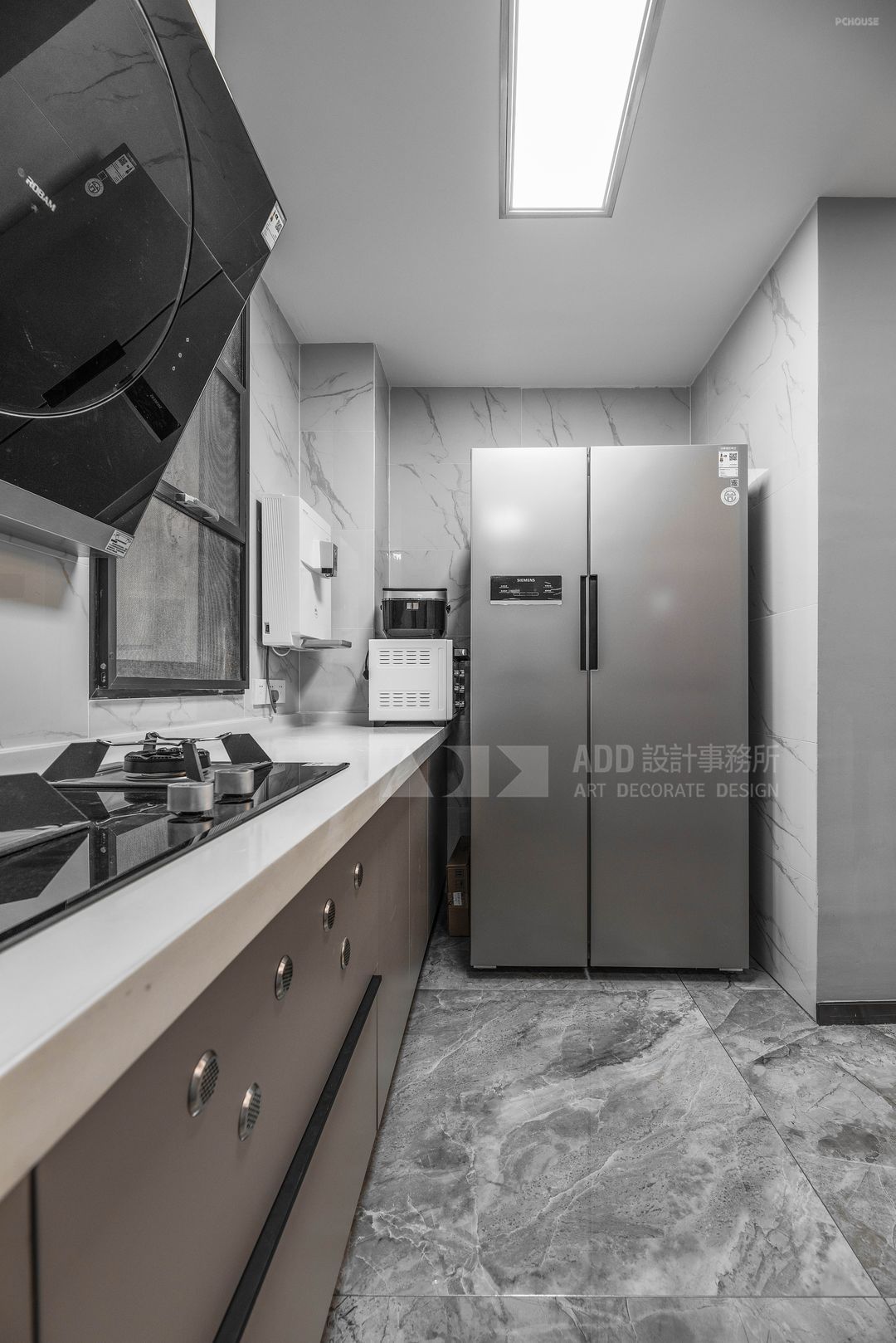 本案结构改造方面比较简单,为满足客户需求,把和主卧室连通的一个小卧室做成了衣帽间套书房。过道太宽,把老人房向过道扩展,增大了老人房的使用空间。厨房和生活阳台打通,增加了厨房的面积。进门正对位置太小,餐厅位置则改到了客厅旁边,利用沙发的转角做成餐桌的卡座。