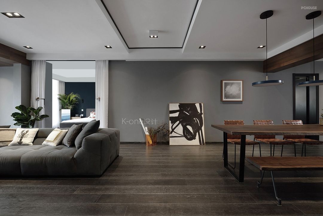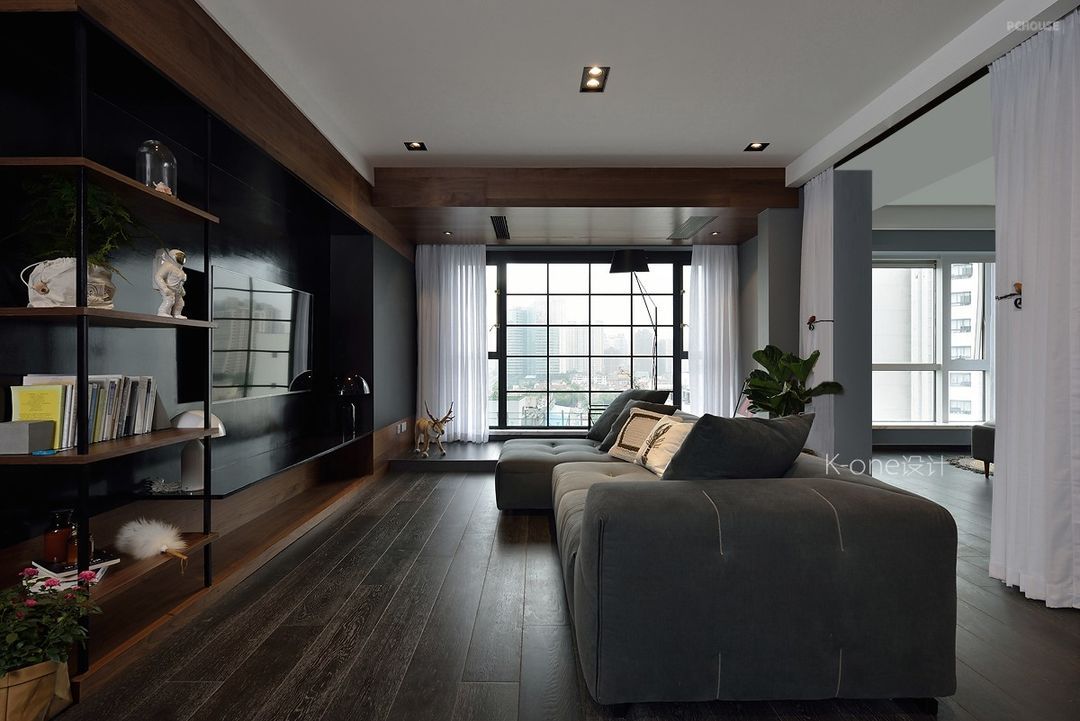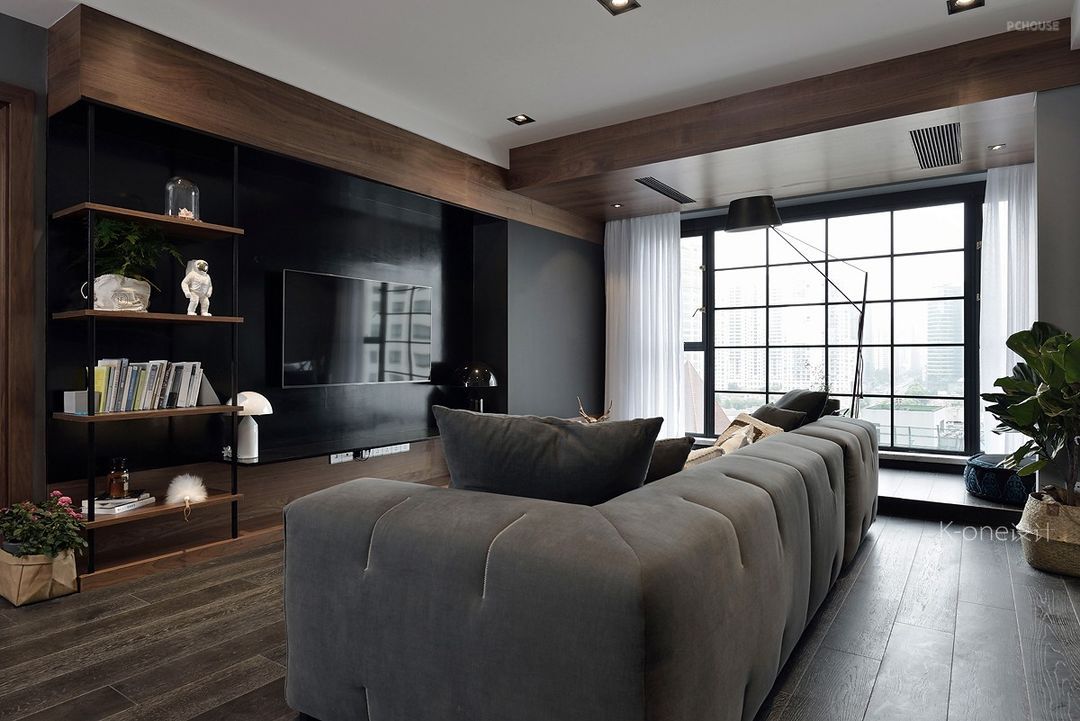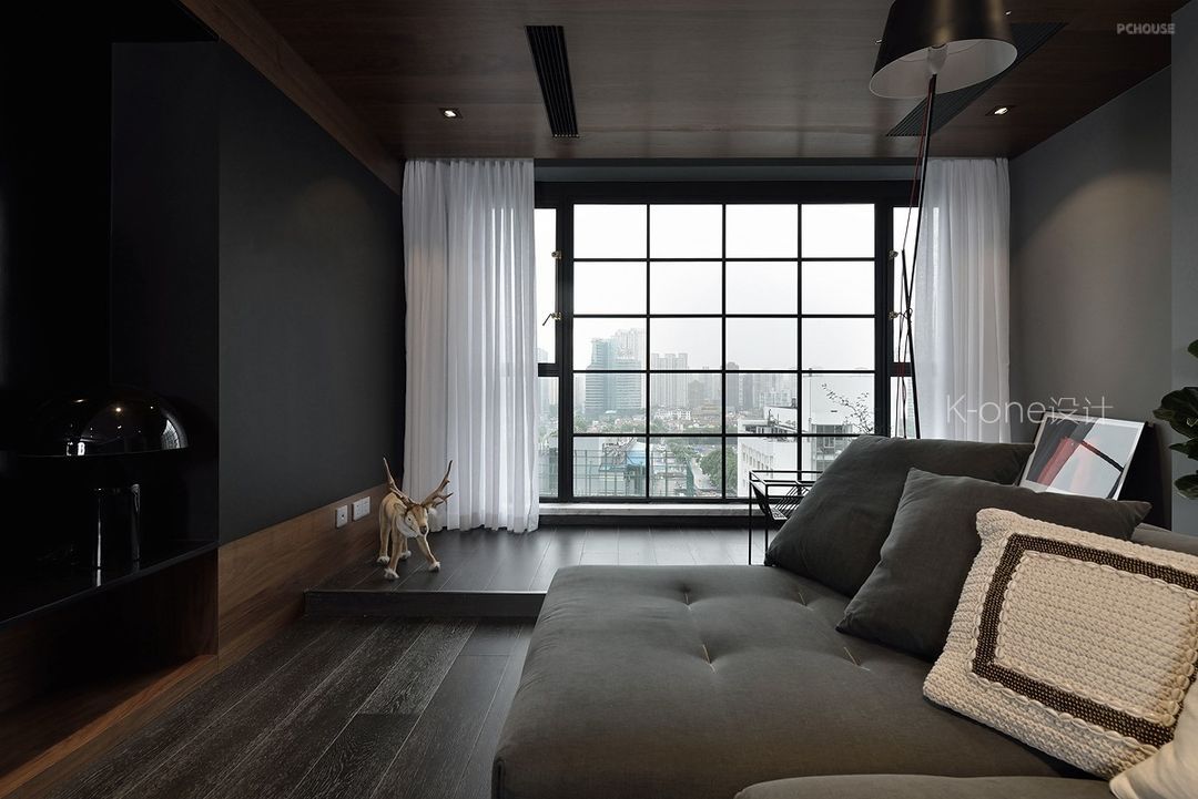 客厅的主题是黑白灰。