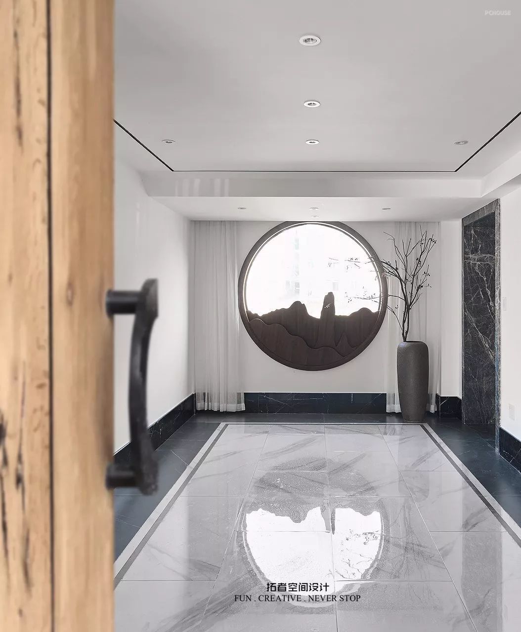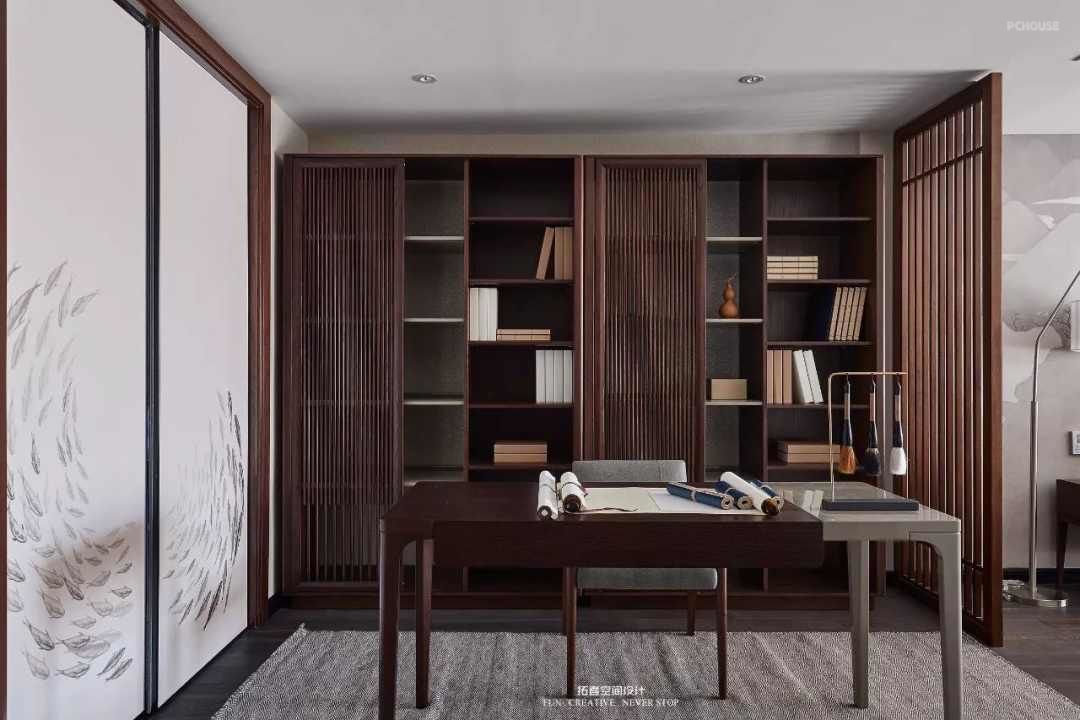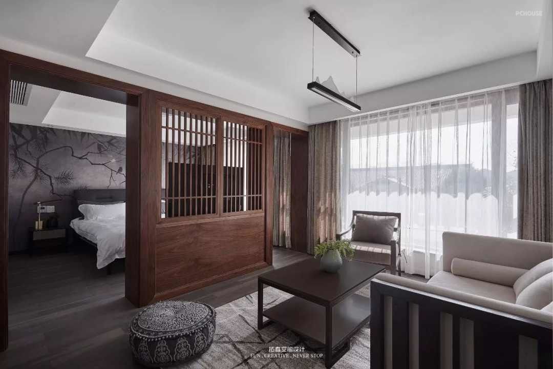 前言: 业主常年生活在国外,拥有丰富的人生阅历,因而对于居住空间需要多元化的生活表达方式,不受传统空间格局的约束。有朋远来,不亦乐乎,邀至厅堂,客人上坐,主人陪同,清茶点心,谈笑风生,中式的典雅与庄重,期间蕴含的厅堂文化,无可比拟。作为一个度假休憩以及接待亲朋好友的场所,整个设计中,客厅是最突出的部分,双层的挑高空间,大量的落地玻璃能够引入充足的自然光线,有一种窗明几净的通透感,厨房餐厅设置在顶楼,靠近室外大露台,通透敞亮,可以容纳十几个人就餐烧烤。一楼东侧是阅读和放影区,用可旋转的屏风隔断,看书 叹茶,新中式的简单、朴素、自然、孤傲、幽玄之美,宛如一首凝练的诗歌。