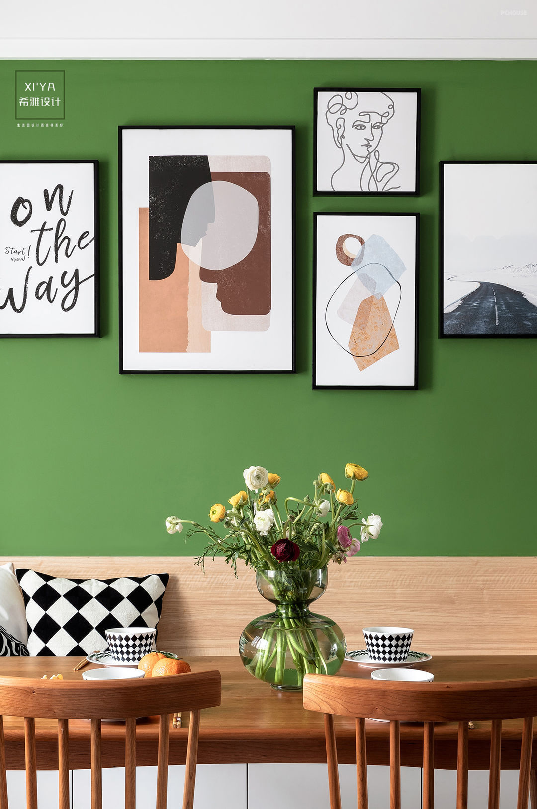 实木餐桌椅的温润木质和灰白墙面的搭配,清爽干净,质朴无华。