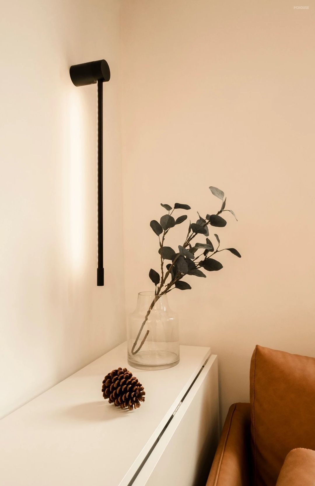 黑白灰的床头一角,轻松随意的搭配,些许绿植的点缀,原木地板、白色柜门、以及柔软的寝具软装,材质和色彩上的相互碰撞,衬托出各自独特又融合的美,简单又自在,轻松提升睡眠质量,让人心生向往。