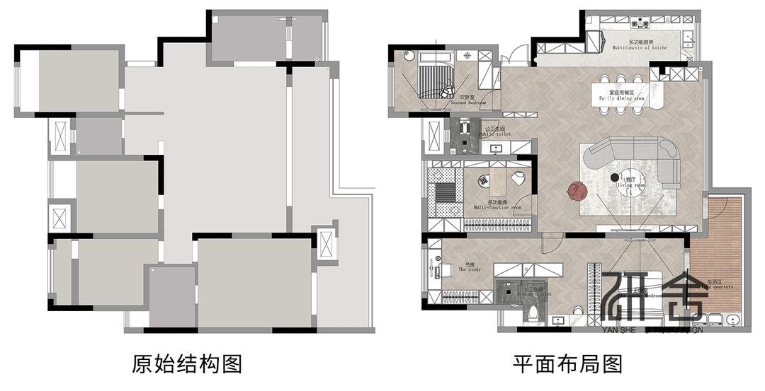 本案业主经营着一家服饰公司,对设计有独特的要求,希望新房的设计风格可以与工作联系起来,拍摄照片和录制自媒体视频。此外,男主人需要有阅读的空间,女主人热衷旅游穿搭。