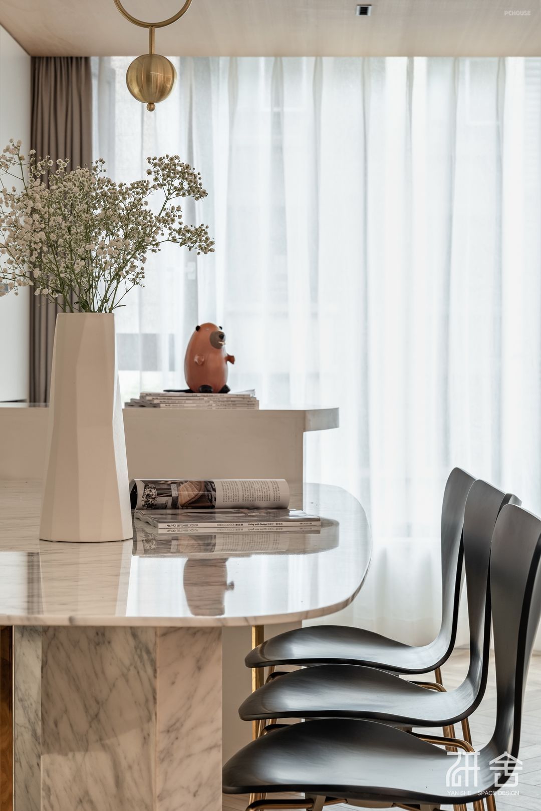 石材与金属结合的餐桌让餐厅区域充斥着轻奢氛围