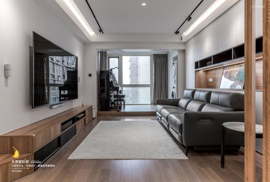 2. 沿墙定制一整面墙的柜子,包括客厅和房间,增加储物空间,又不会导致压抑的视觉效果。