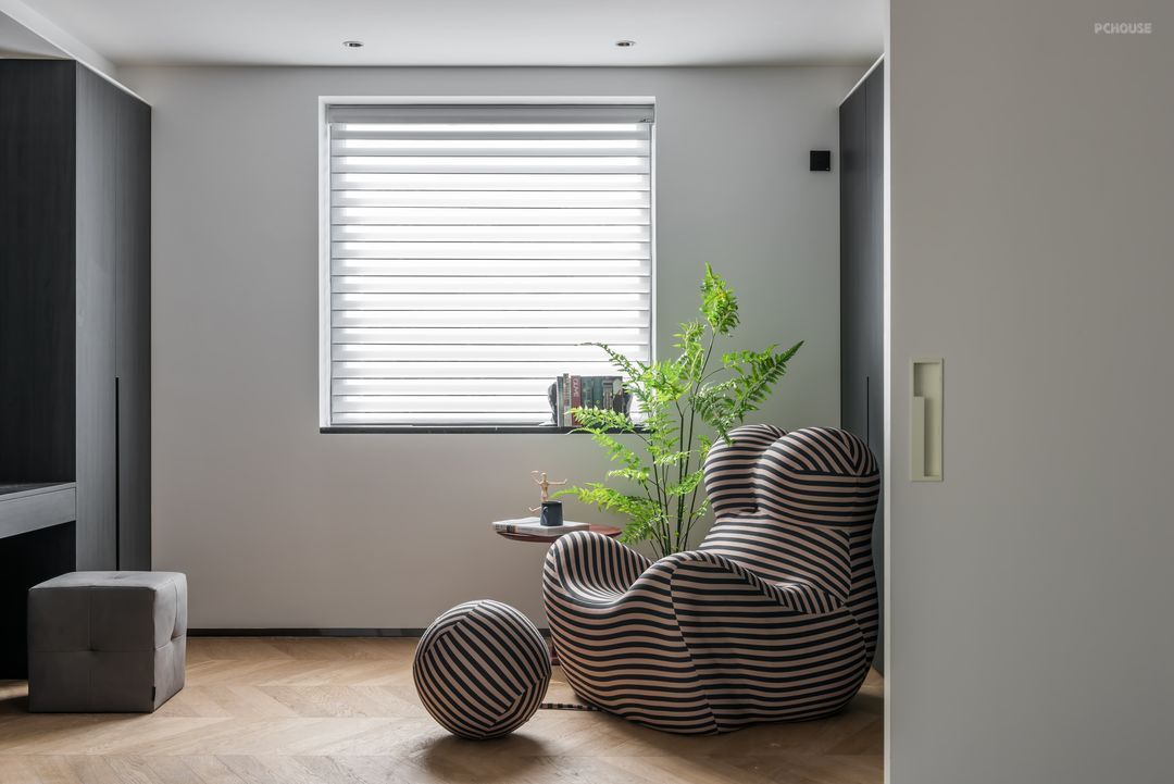 客厅是一个可交流可独立的空间,女主人可以在这里看一本书,小孩子也可以在这里给家人或者客户展示他的玩具。孩子们的笑声在整个客厅内萦绕“居住”不再是简单的“栖息”而是安放全家人幸福的私密空间。