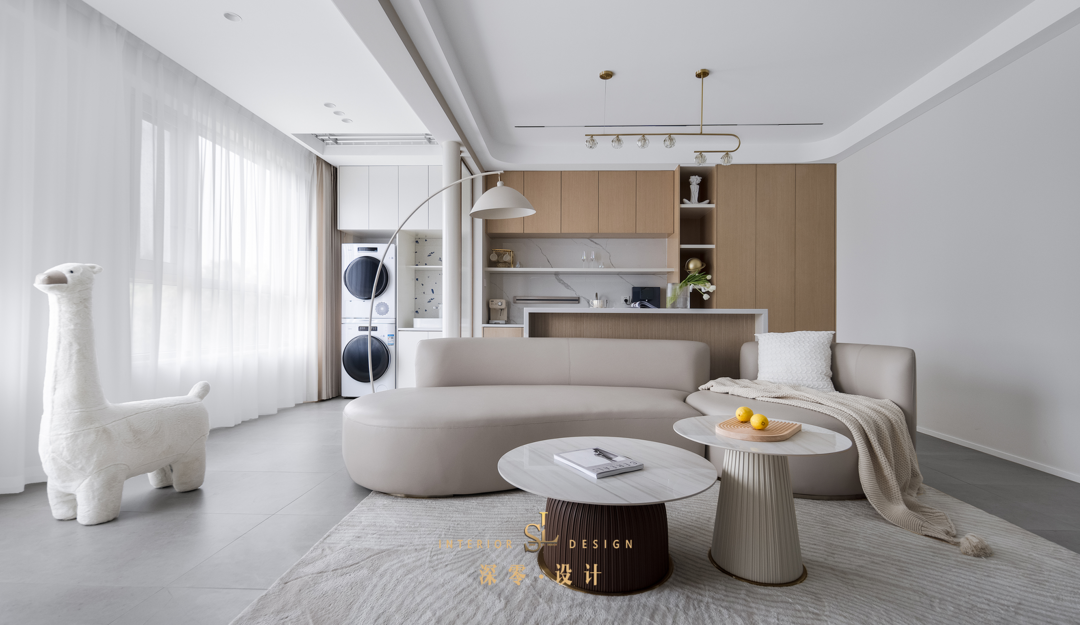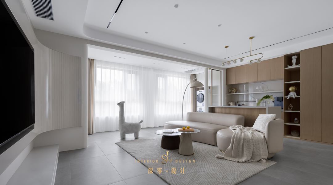 室内融入建筑思维,弧形元素打破既定的沉静。柔软与坚韧的对比、素净与力量的糅合,内外间流转自如,自然延伸。