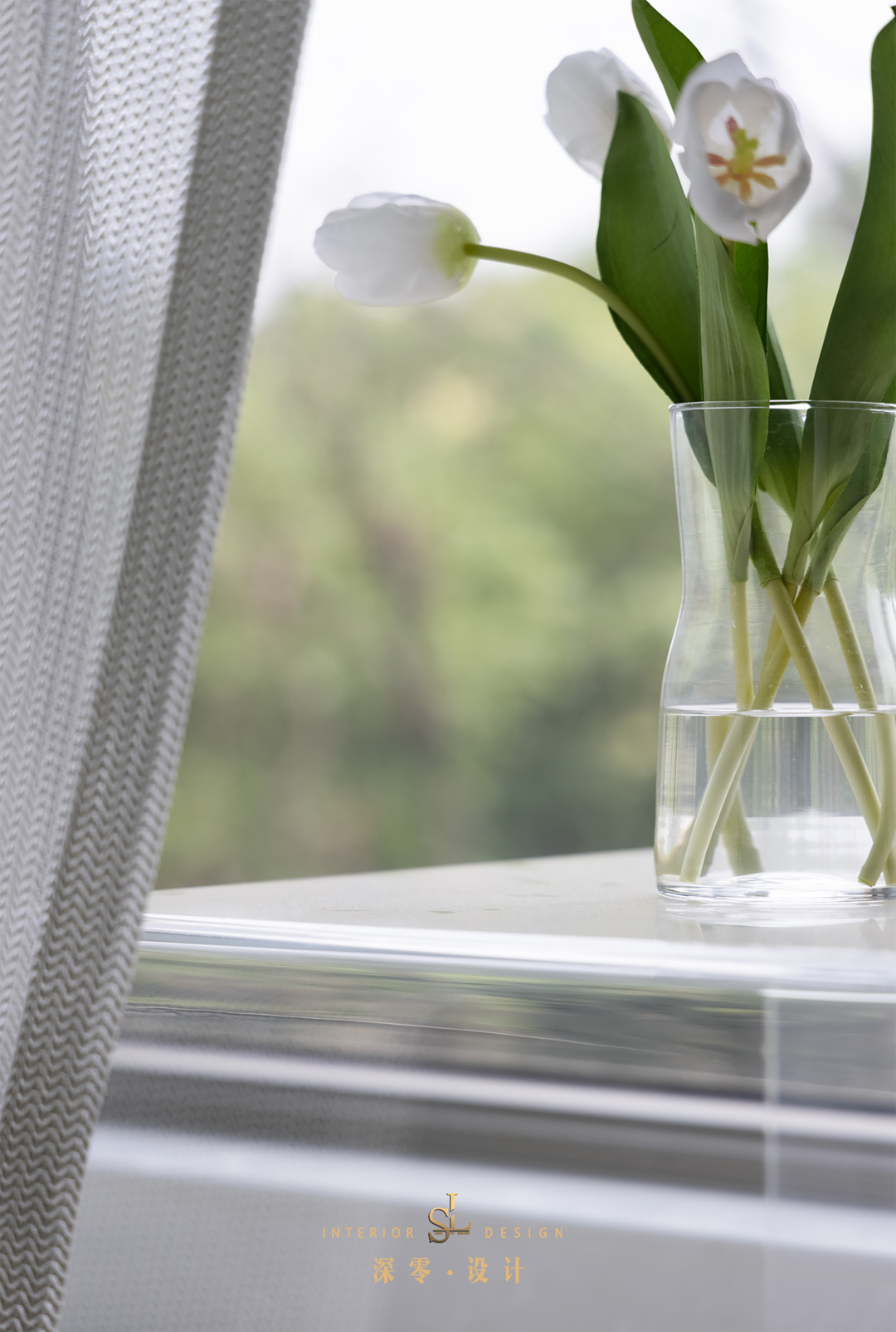 亚克力小桌子+鲜花,点亮了飘窗区,和室外景色很好的融为一体。