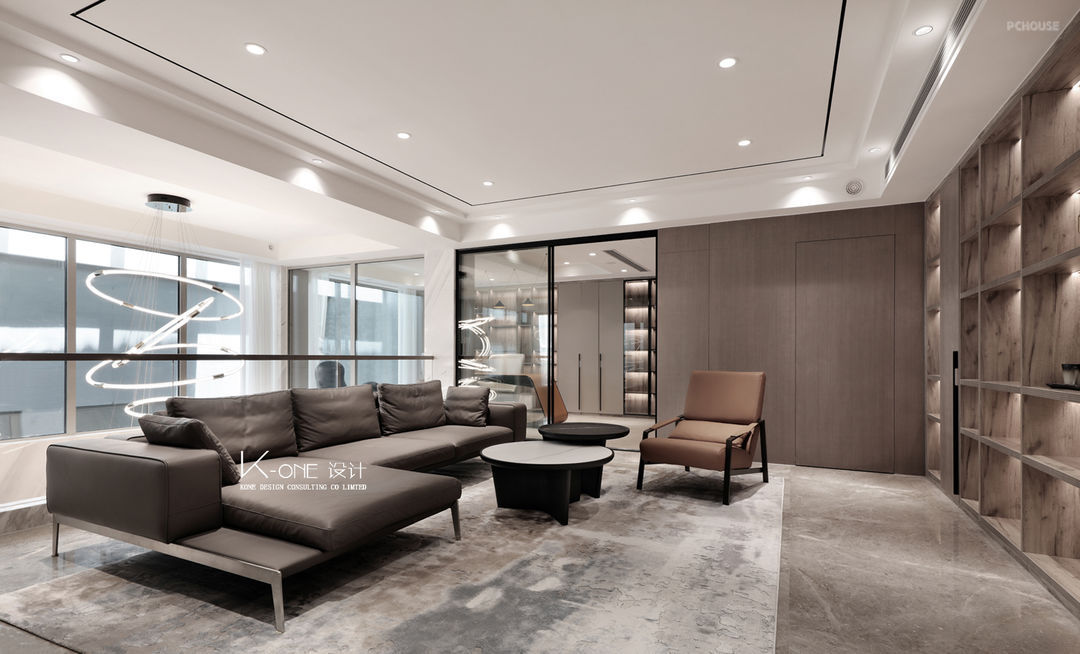 起居室简约精致有品位,是家居生活不可缺少的部分,包含我们对生活的热爱。挑空的设计及玻璃隔断让室内空间更宽敞明亮,给平凡的生活细致的仪式感,让生活的质感得到淋漓尽致的展现。