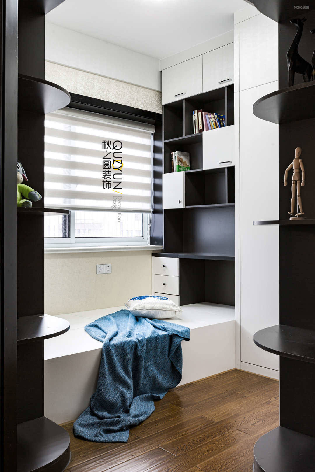 解决方法:北移的过道解放了原始儿童房过道的空间,并且在这个空间放置了一个开放式的书房;