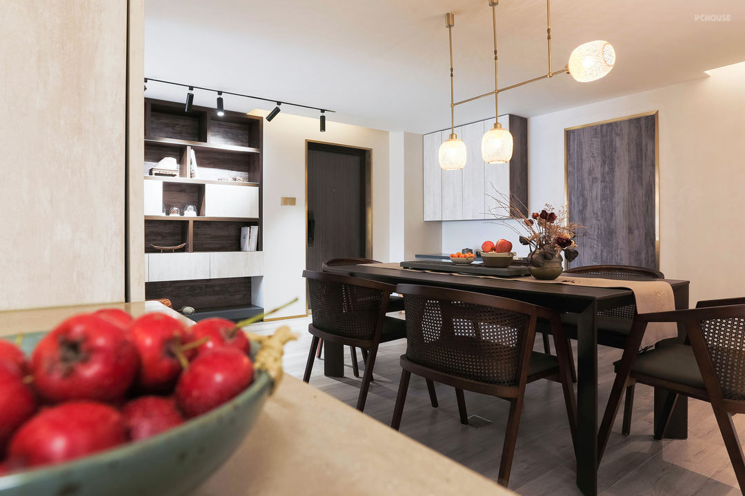 马来漆的基底下,室内以米色、深棕色调的家具进行搭配,利用最简单的色彩塑造出宁静与温暖。