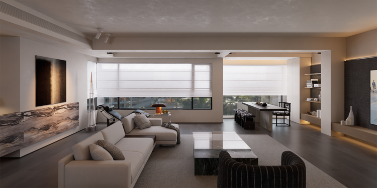 设计师充分利用客厅宽阔的场域,纳入书房功能,充满艺术感的桌椅为这处角落填充了诸多细节美学。