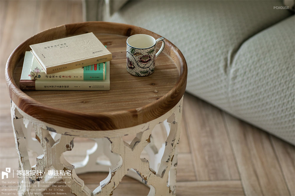 做旧的边几、书桌、视听柜,追求着自然的风格与岁月的痕迹。