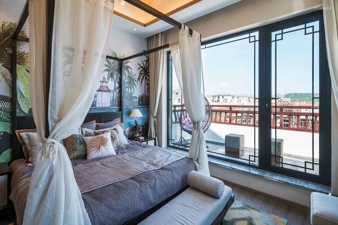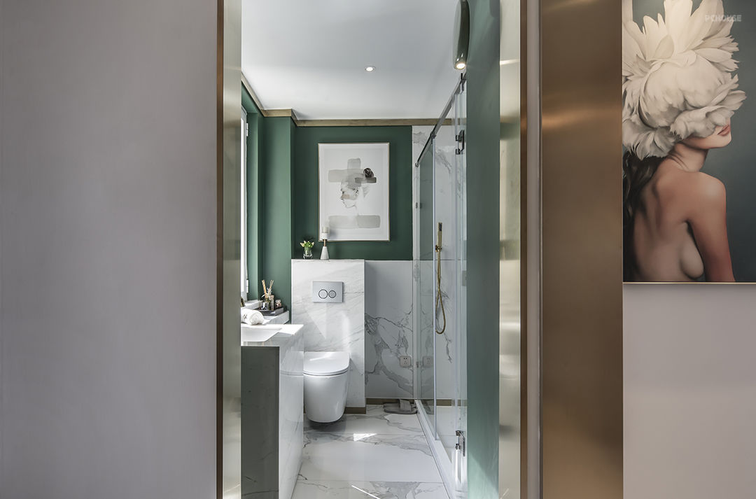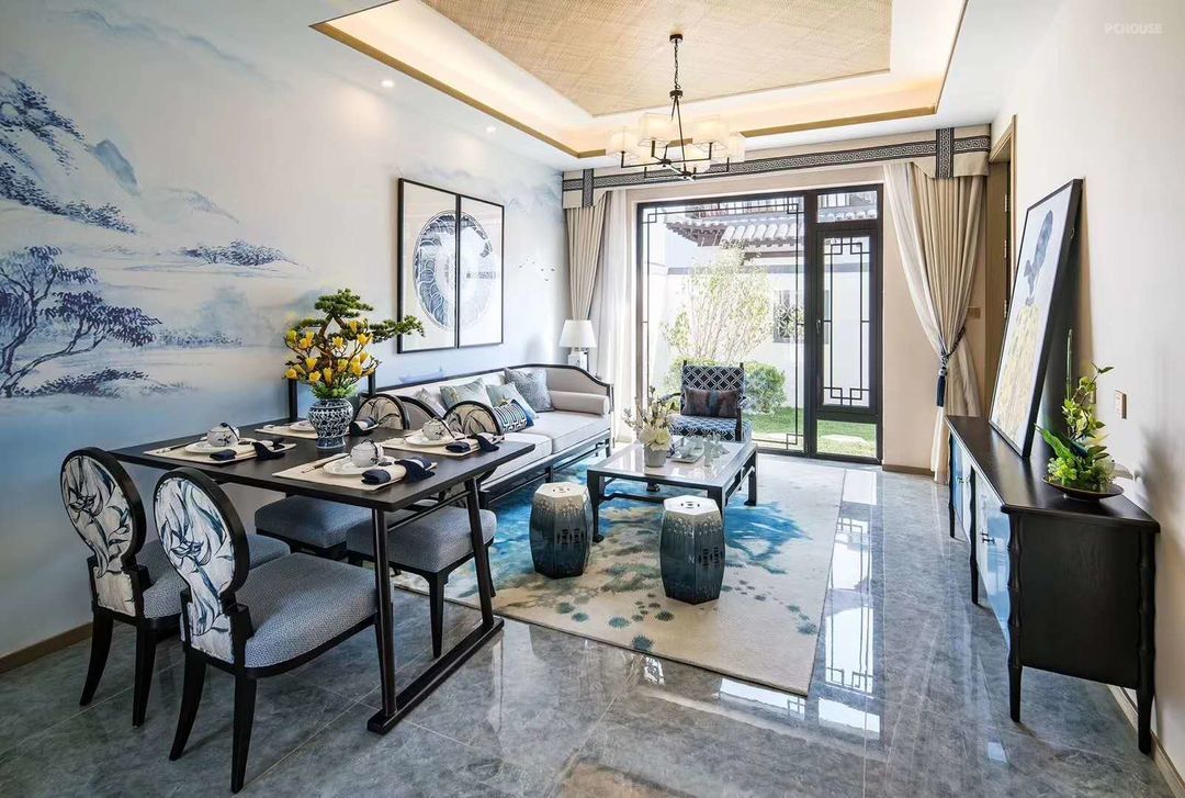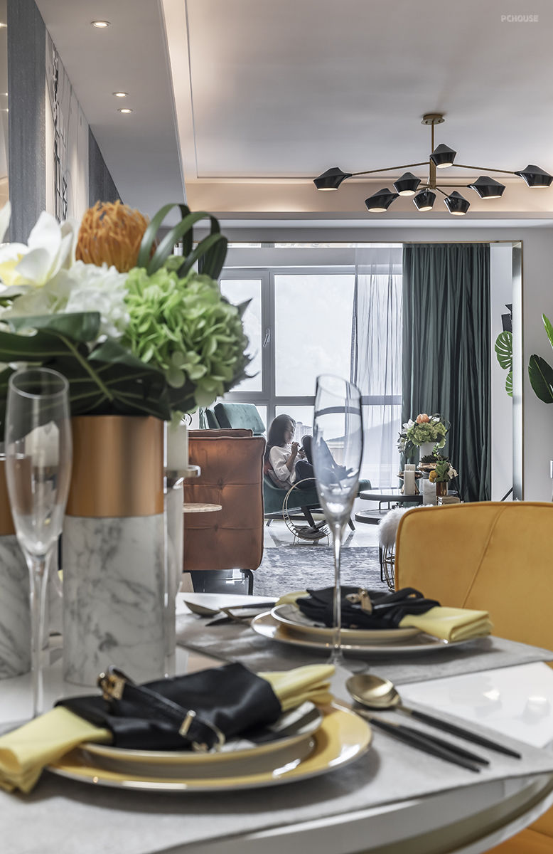 前言: 本案更多的是从一个纯粹的空间角度去做设计,整体空间的墙顶面都选用极简的方式,属于一个极度中性色彩的硬装感受。门厅却选用了很有分量感的软配去修饰,有别于其他房屋的画品与石材修饰,用一份若大的木质框体组成的画呈现在门厅的墙面,有一种别样理智的庄重,色彩上选用一个近似群青的克莱因蓝,与羽毛的吊灯于空中交相呼应,庄重而不高冷,理智尚且柔情。正如这屋女主人的气质一般,她是独当一面的职场女性,也是家中二宝的搞怪妈妈。客厅里有大龙喜欢的葛优躺,也有二胖喜欢的随处爬。这个是他们最享受的一个状态。只有庞大的收纳系统做支撑,才能让居住者真正的享受空间。设计师用它的方式,将最大空间的尺度给到他们,肆意奔跑打闹,这个也是给他们童年最好的礼物。