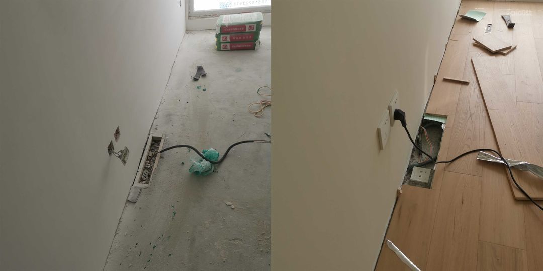 2、利用地暖层高度,设备集成预埋地暖底层,可以完全隐藏线管。