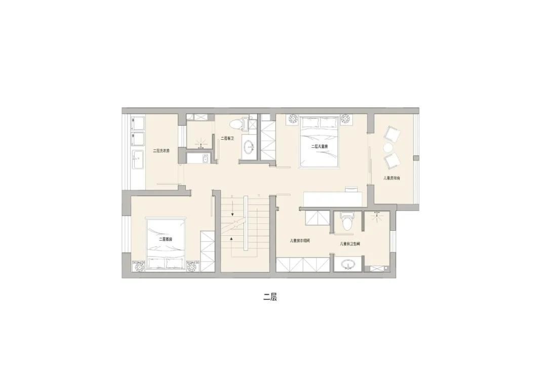 考虑到屋主的孩子已经读初中,因此儿童房的颜色以较为成熟的黑色和蓝色为主,显得简洁典雅。一旁的小马摆件和不规则的贴纸墙板,为房间增添了生气。