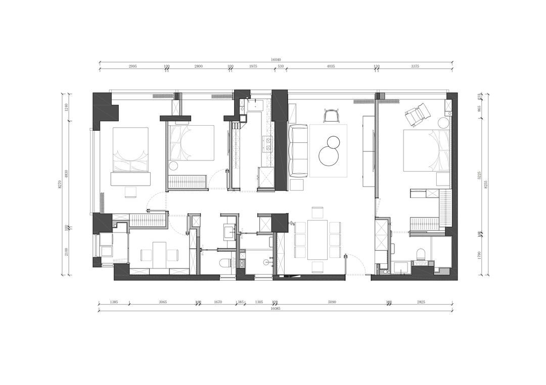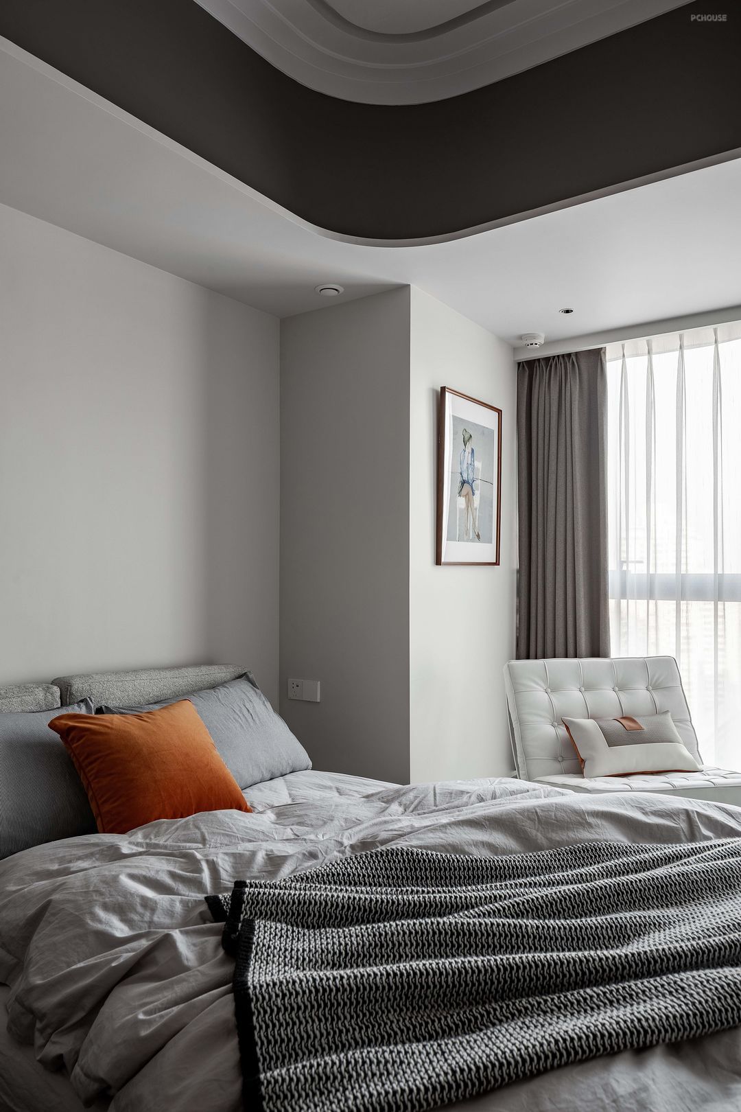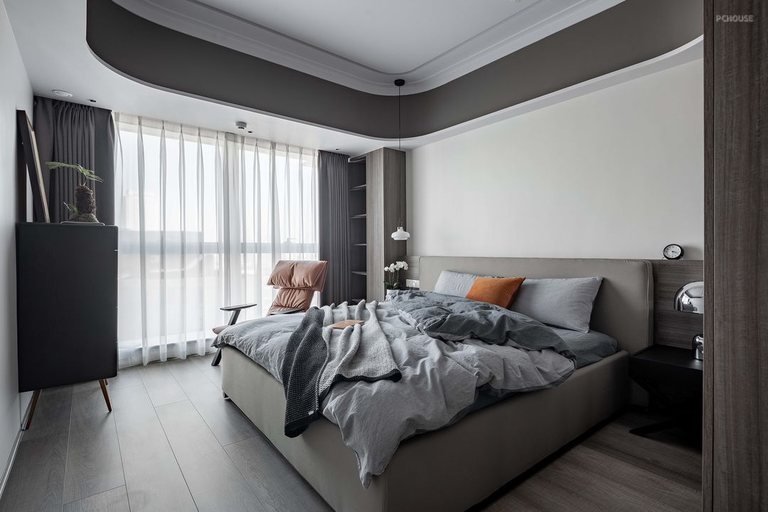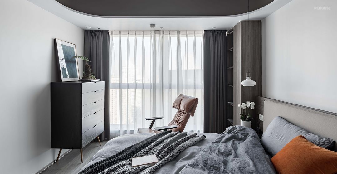 进入这套房子前需要经过一段长且逼仄的公共过道,打开家门,全览客餐厅,视野顿时开阔,是回家的舒心。进门右侧即可坐下换鞋,挂好外套包包,往前走两步推开主卧房门,更换舒适的家居服,简单洗漱,沏一杯茶,坐下翻看一本书,全然忘却在外忙碌的疲惫。
