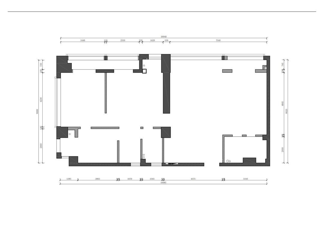 百叶帘与格栅墙相呼应的竖向线条、吊顶的平立面颜色对比、吊顶顶部线条叠级处理,延伸了视觉效果,弱化层高不足的情况。