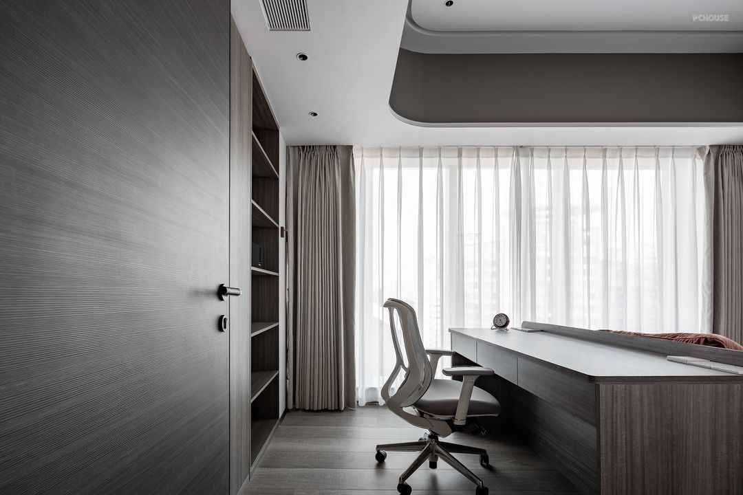 陈先生的女儿已经上高中,相比起来陈先生夫妇二人在家时间更多,主卧与公共区域更近。女儿房在空间的另一端互不打扰。但他们不会全然分离,爸爸在书房看书,妈妈在阳台收拾衣物,女儿打开房门一家人也会相遇,坐下一起喝喝茶,讨论书中的典故,即使身后是生活的琐碎也有欢声笑语。