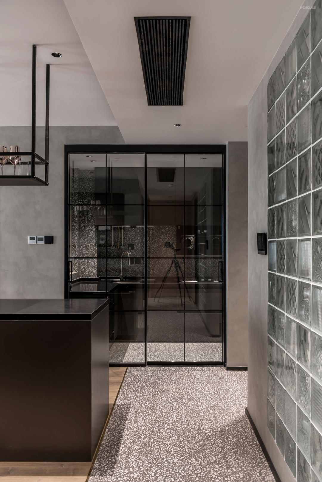 设计师认为,居住空间是由主人的情感和生活习惯而组成,给人的情绪找到一个完美归属,是生活的最佳答案。暗色空间里,水泥漆与玻璃砖、木材、黑色柜体等多种材质进行碰撞,用色不守常规、大胆的空间,趣味横生。