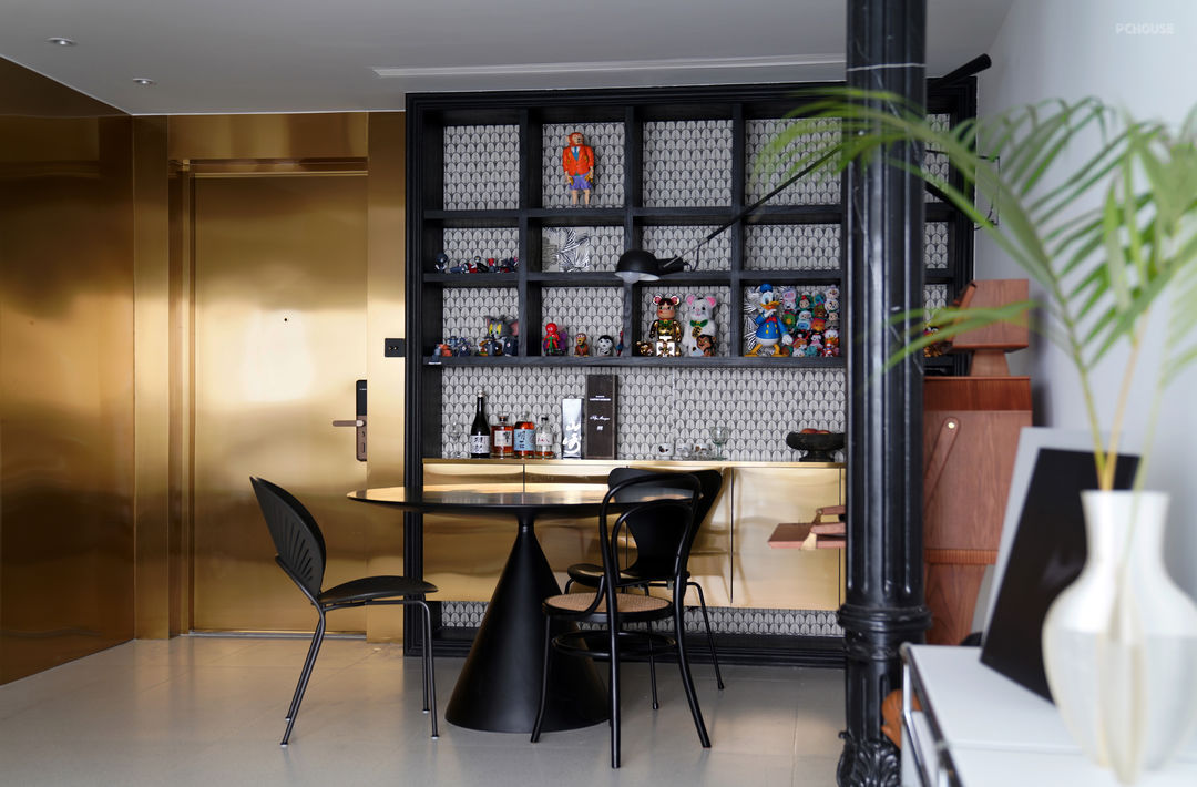 人作为一个矛盾体,对居住空间的需求也通常体现着复杂性和矛盾性,复古和金属的科技感形成一个强烈的对比,同时金色的奢华感和ArtDeco新艺术风格的细节也相得益彰。