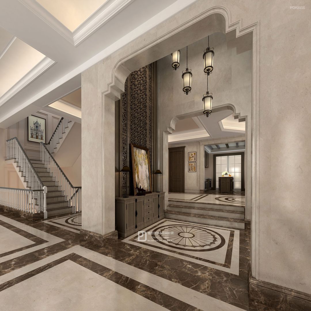 欧式的吊灯,与复古拼花大理石地面相呼应,让这个中西混搭的空间大气奢华,毫无违和感。
