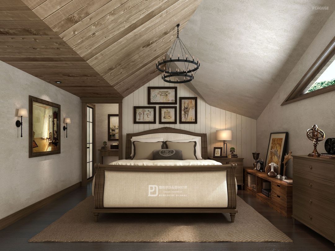 床头背景对称的壁灯,泛出柔和的光线,实木的双人床,给人清新自然的质朴感 ,打造温馨宁静的气氛。