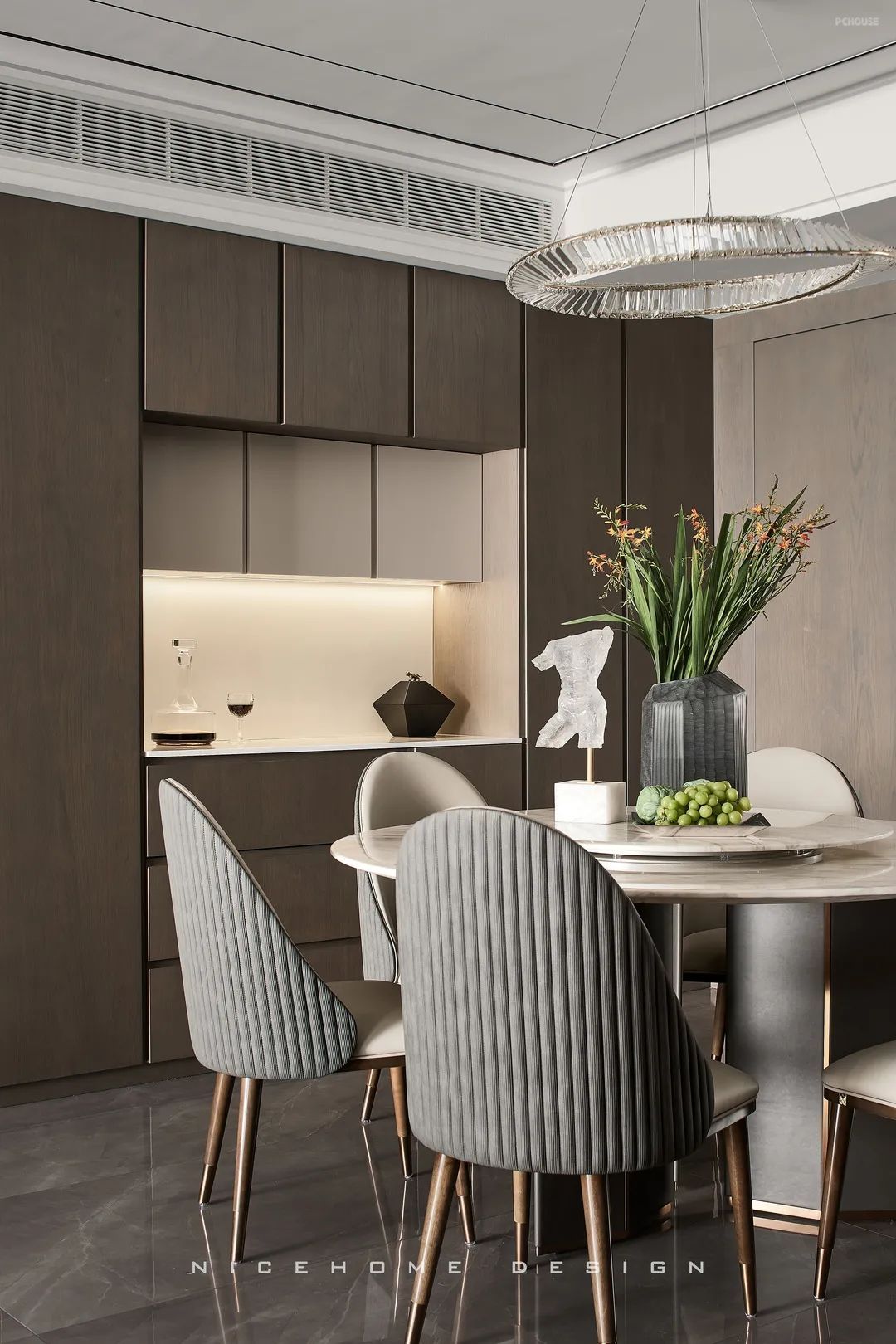 空间平铺的温厚色泽以稳重低调的问候与居者发生情感碰撞,含蓄内敛兼具东方美学韵味,一呼一吸之间将温度与关怀深入人心。