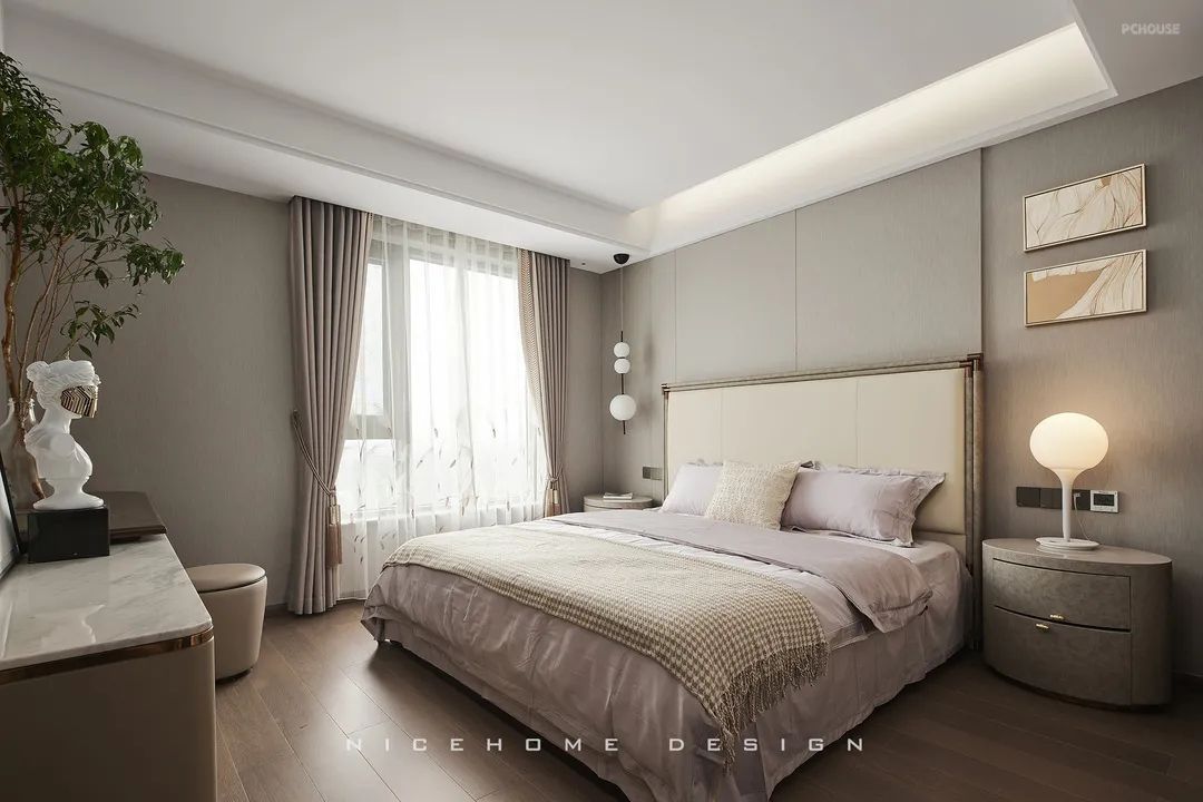 主卧之内所流动的情感,温暖而真诚。艺术感与生活感交融,营造出亲切而闲适的氛围,分分钟便能抚平主人一天的疲惫。