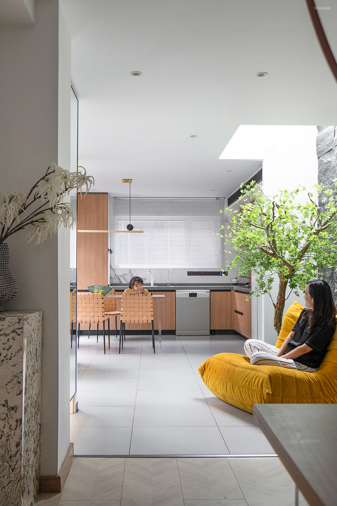 作为一处亲子宅,需求回归至 ”以人为本” 的情感面,期望创造「家」与「人」更为紧密的给予及索求,因此,住宅的公共区域,便成为设计的最佳。