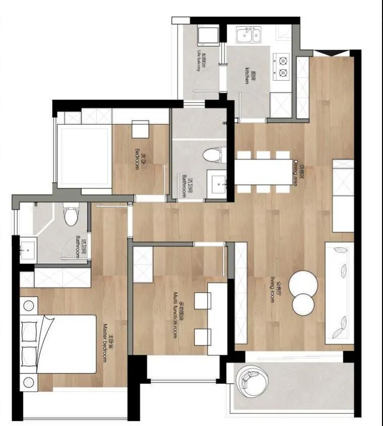 业主的要求是不需要大改,所以我们布局的核心思路是对于家具与空间的理解,空间与空间的关系进行分离,重组,规划。全屋以温暖的原木色作为基调。没有过多硬装的工程,家具自身就是最好的装饰。