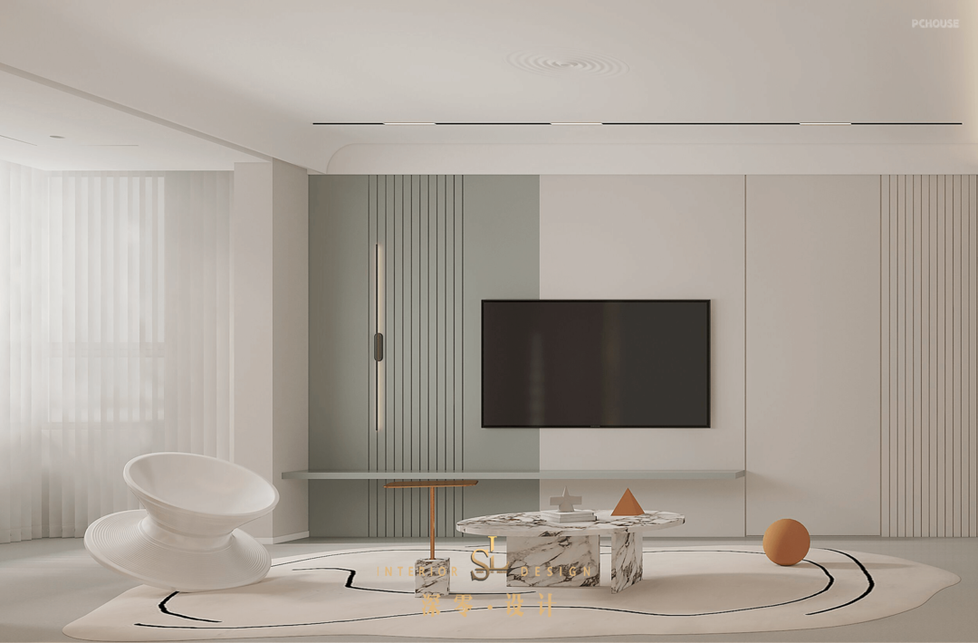 入户第一眼所见壁炉处悬空收纳柜,让人着迷的线条形态勾勒出立面惊喜,水波纹石膏灯荡漾旖旎细节,要把如此的纯粹与风韵都化诸点滴。