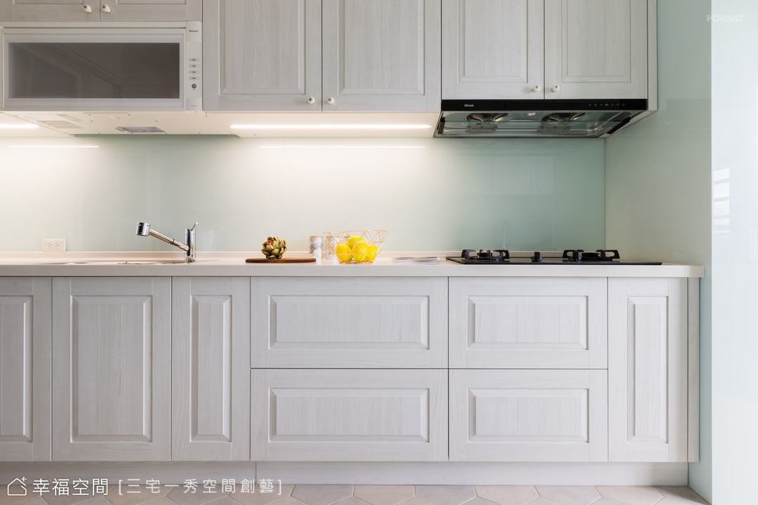 考量到未来可能的新成员,所有的设计规划都注重机能超前部署。主卧入口十分宽敞,浴室位于左侧,并将老旧卫浴设备全面更新,搭配大理石纹磁砖,效果可比饭店等级;浴室门口右侧,乃规划为女主人的化妆桌,桌面转折为矮柜延伸至睡眠区,增加了收纳置物的空间;而床的右侧,更特别规划了未来婴儿床与尿布台的空间。