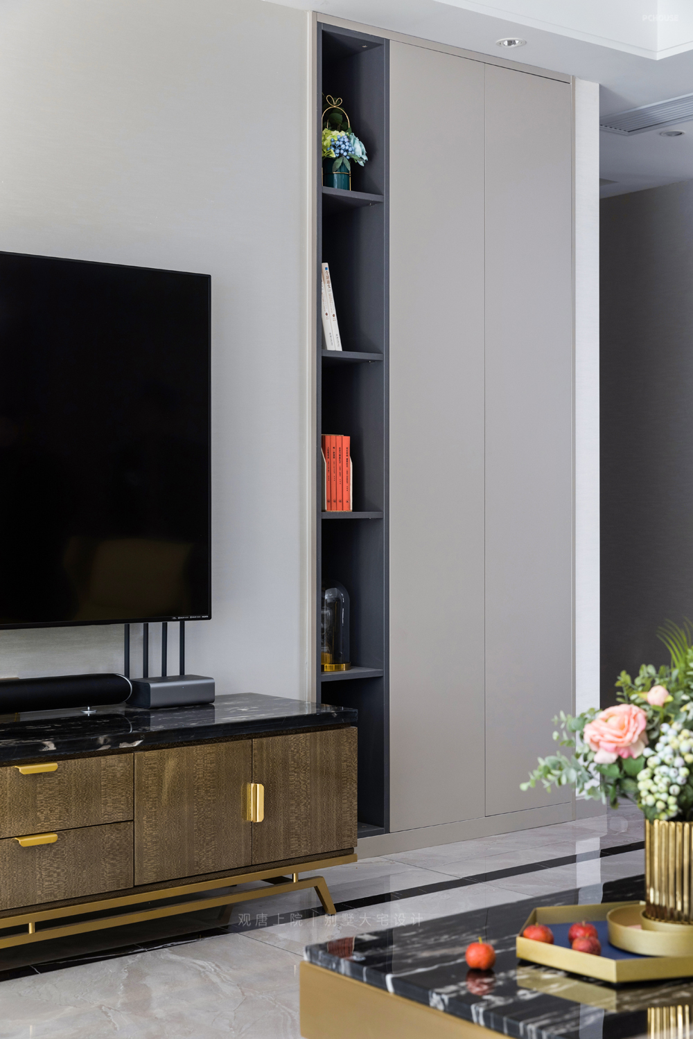 客餐厅功能区分明,在时尚的现代氛围中,为空间注入一抹优雅、高贵的金色,让雅致与时尚感并存。