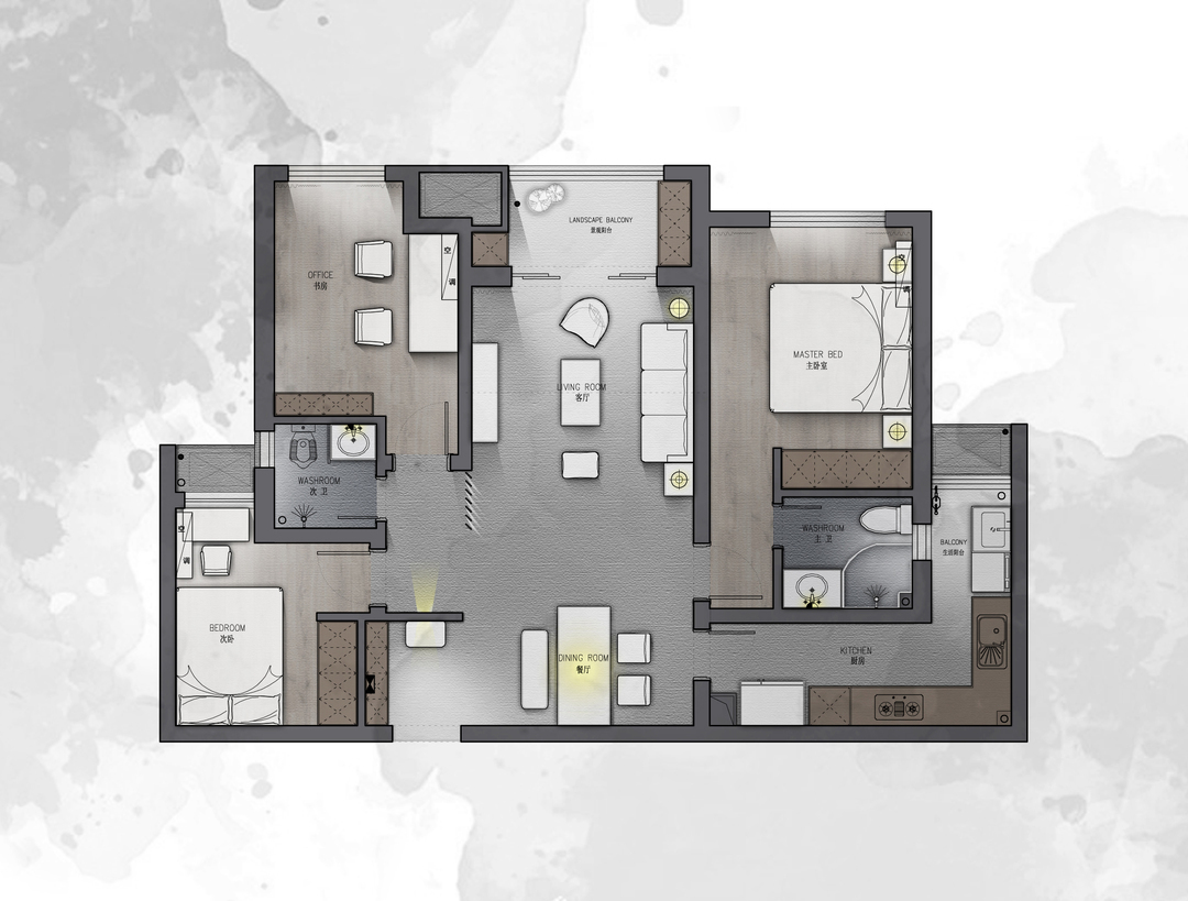 业主认为家不是一味的统一“黑白灰”,家应该有自己的模样。就像全屋业主绘制的装饰画,拥有特别的画面内容及装饰肌理感…然而这些又是居住者自己独有的喜好。设计的目的便是把这些想法进行规划并落实到室内3D的空间里,家便这样极具包容又别具自我。