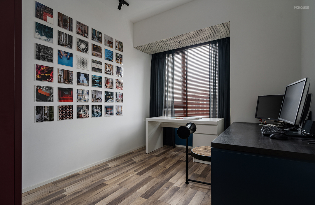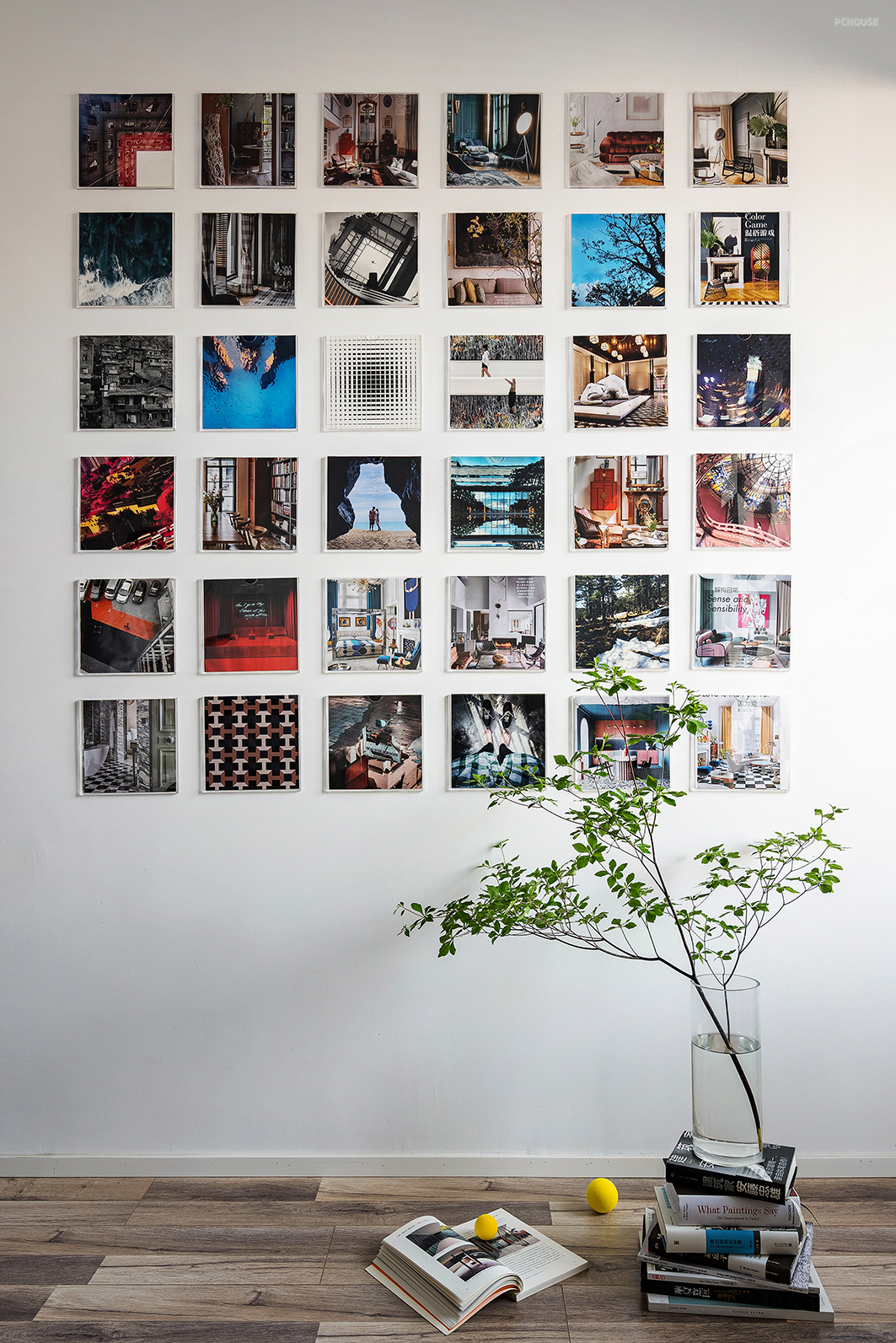 本案业主大学是绘画专业,因房屋是过度房,没有过多的预算投入,为控制预算造价,并没有太多结构上的改动。设计开端拟定的设计风格基调为北欧风格,以水泥砖,搭配白色乳胶漆墙面,窗边暗藏蓝色乳胶漆,搭配极具装饰感的墙纸,增加室内的特别感;软装设计并没有一个很统筹的设计范畴,而是从业主喜好的物件样式进行搭配和推演;全屋的配色采用黑色为贯穿,拥有各种黑的点、线、面并点缀了多种颜色,用“藏色”的概念,让这些颜色不至于成为主色调。