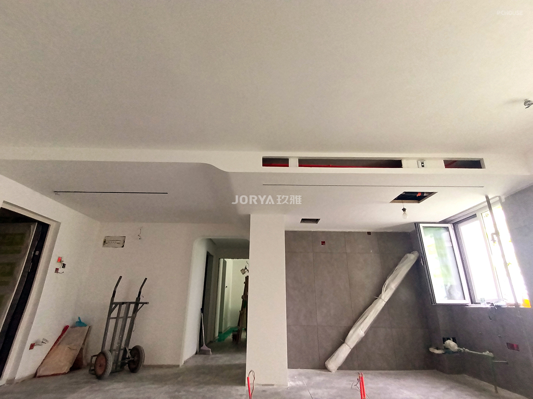 中央空调是刚需,需要在房顶悬挂空调内机并吊顶。吊顶至少是30公分的厚度,这对于不到2.5米的总房高而言,确实会产生压抑感。因此需要合理排布空调线路,使得吊顶区域越少越好。