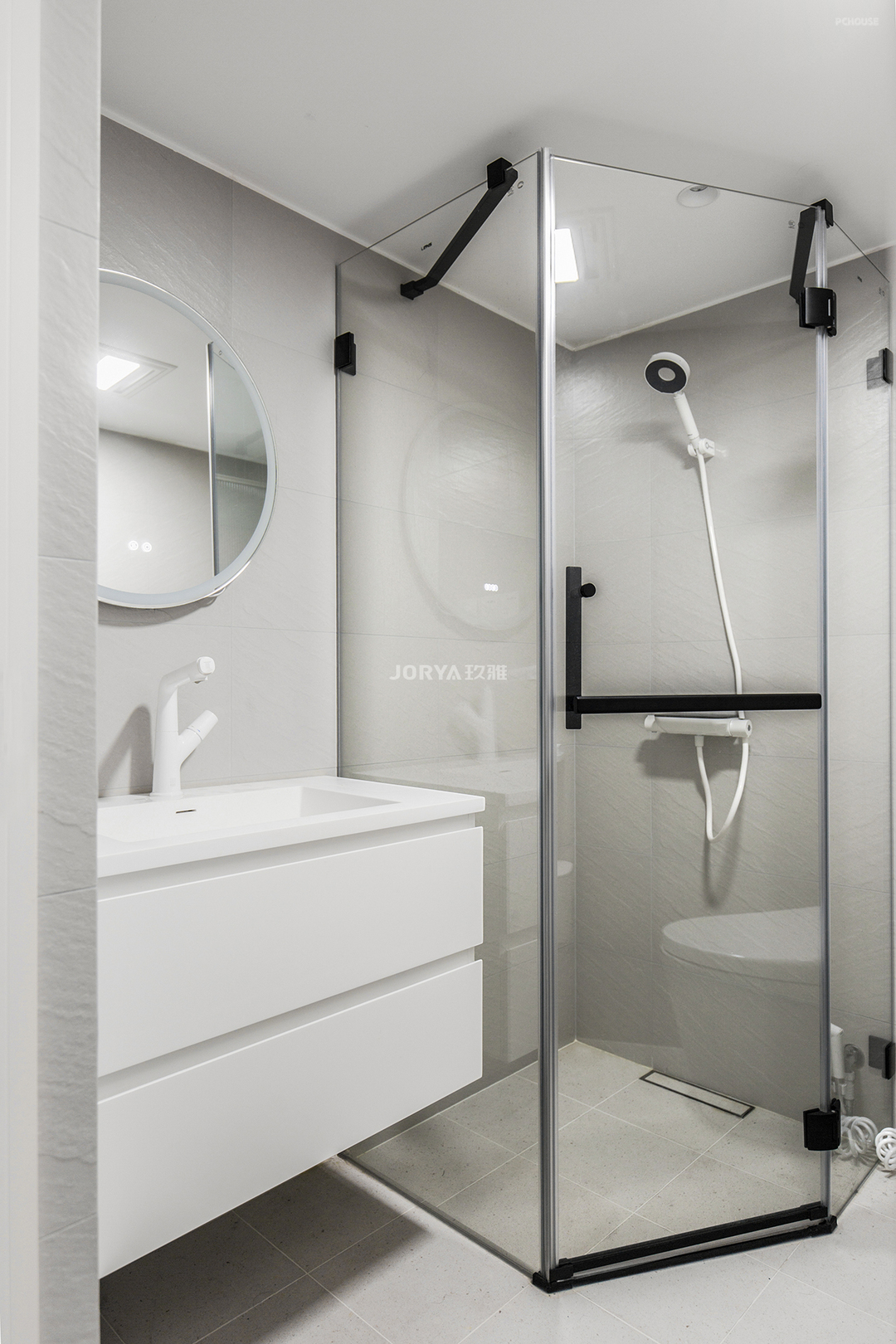次卫用壁龛补齐矩形淋浴区。如果没有壁龛,淋浴区会是一个不规则形,这在设计上不够“整体”,不够美观,使用上也会多出很多阴角,徒增许多清理和打扫的负担。