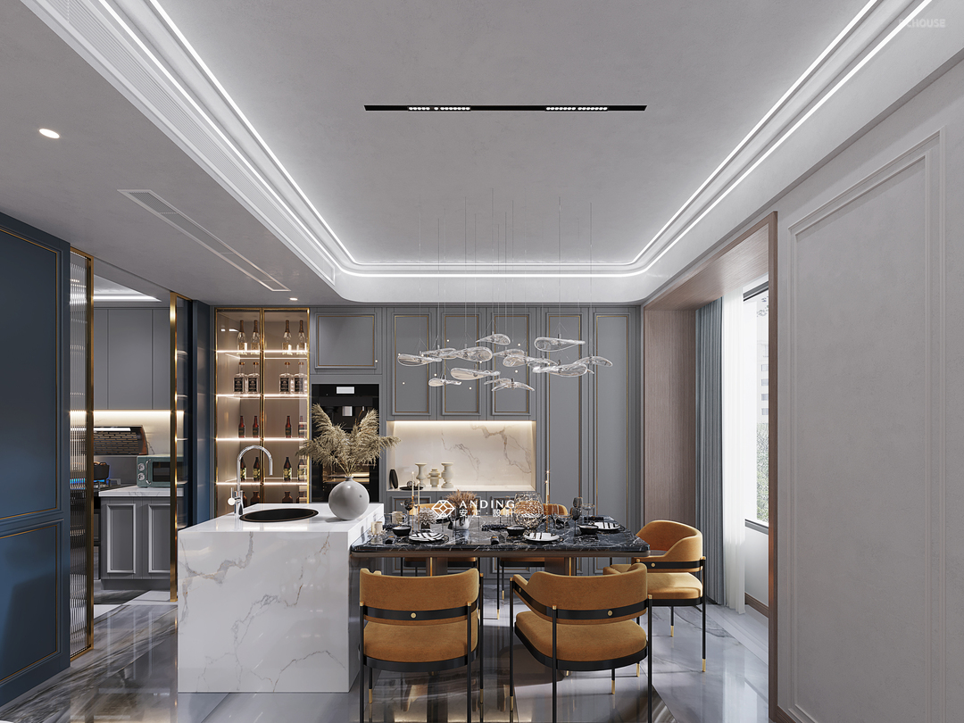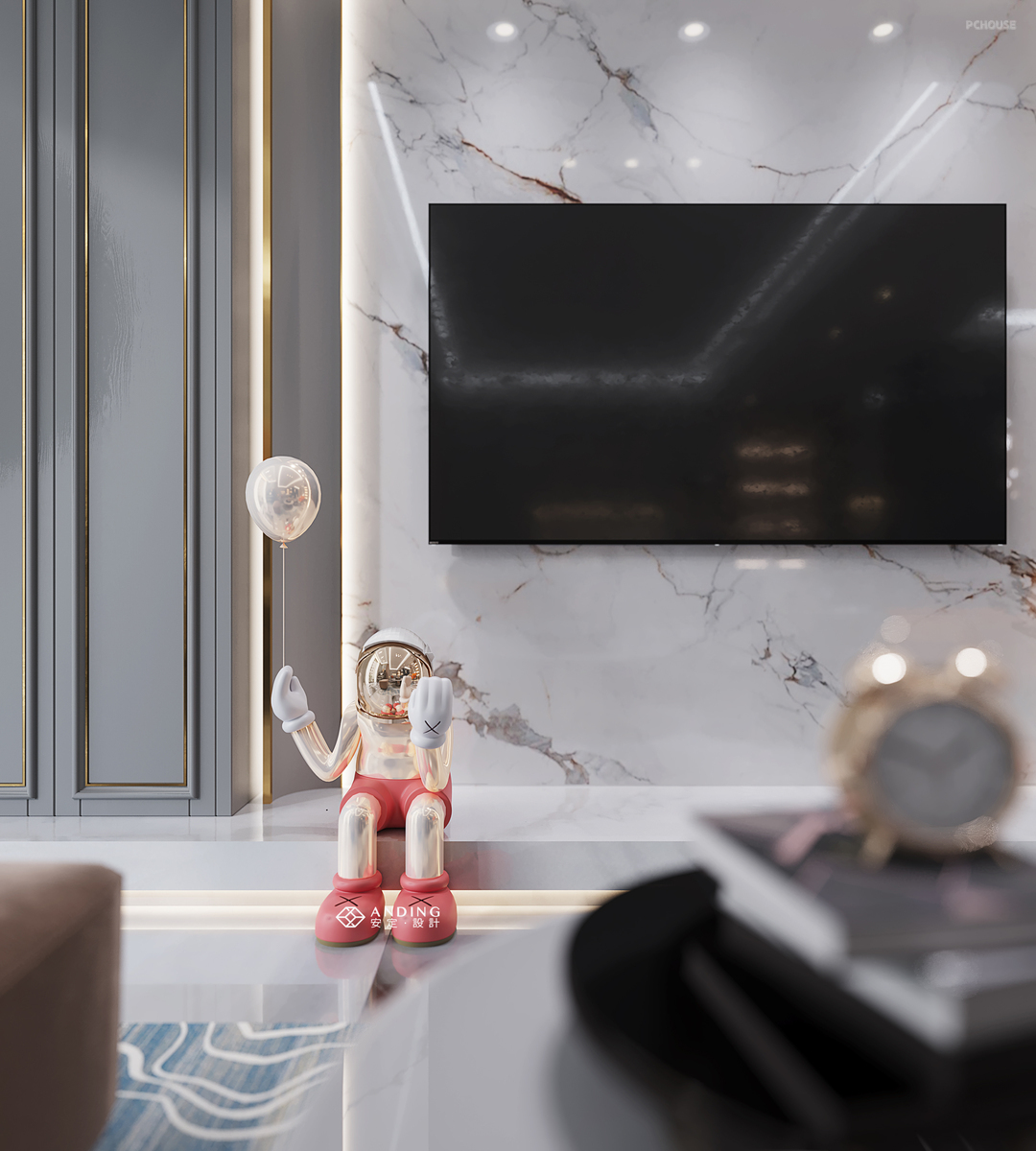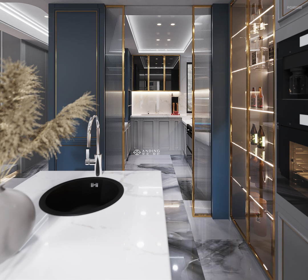 本案以现代美式轻奢出发,在充分展示空间的前提下,对材质、空间、色彩有着严格要求,将精心定制极具品味的艺术品融汇在沉稳大气的空间里,流露出精致尊贵的气质。