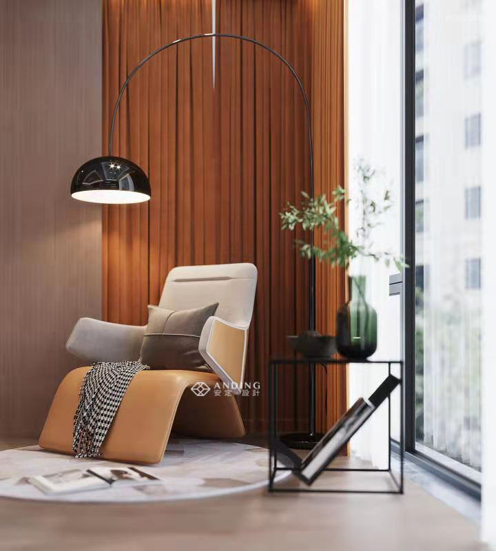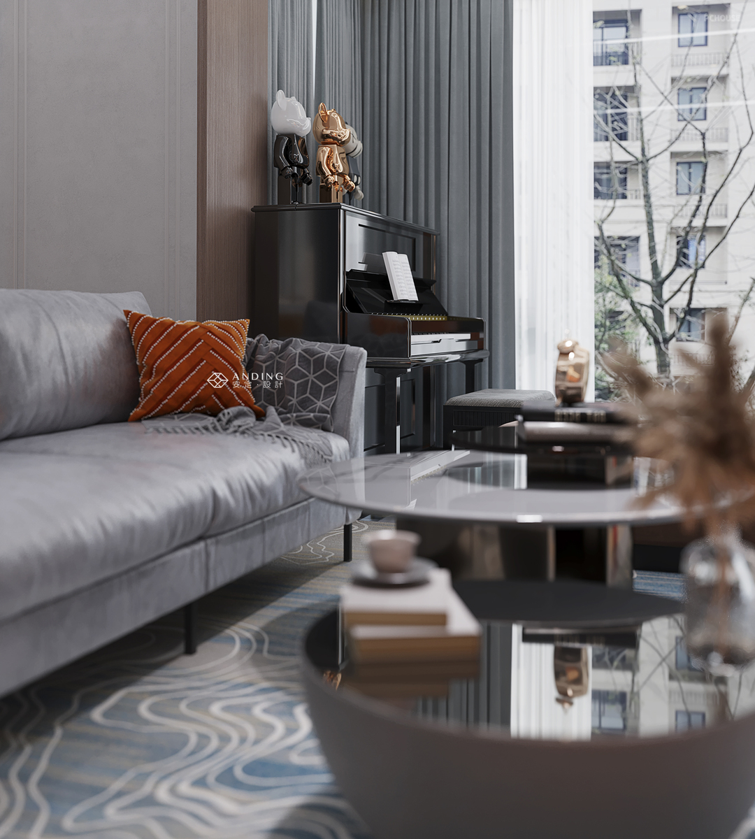 In the design, add hermès orange and metallic colors to the original hard-dressed grey and coffee tone to make the whole space colorful and bright, catching the eye of the appreciator at once.