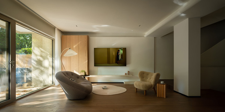 高级灰的底色中,温润木材元素构建起冷暖平衡的空间韵律,再加上材质与色调的运用凸显,当光线照射在墙面上时,折射出不同层次的高级灰,使整个公寓质感与舒适度得到结合,同时高级感十足。