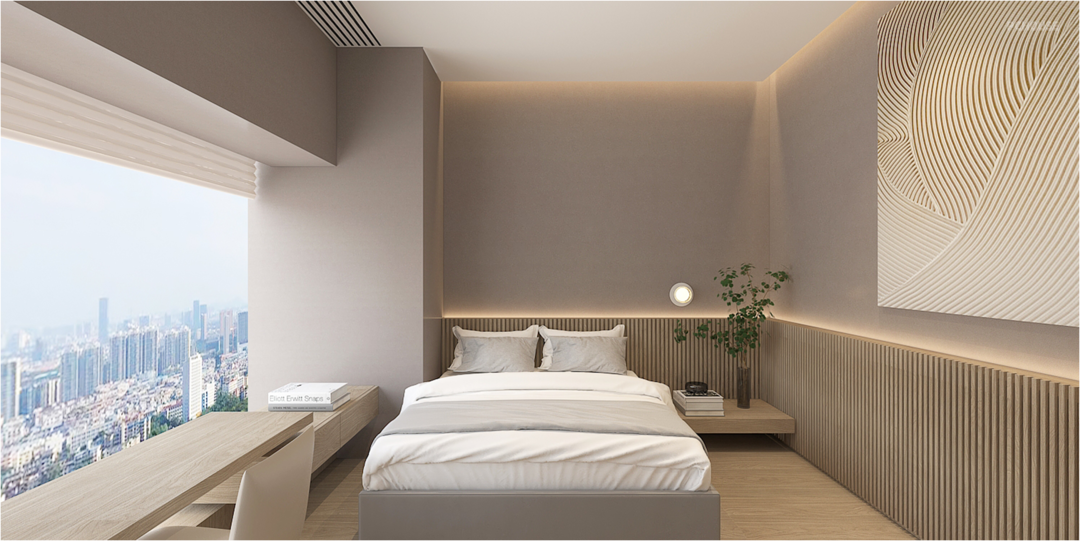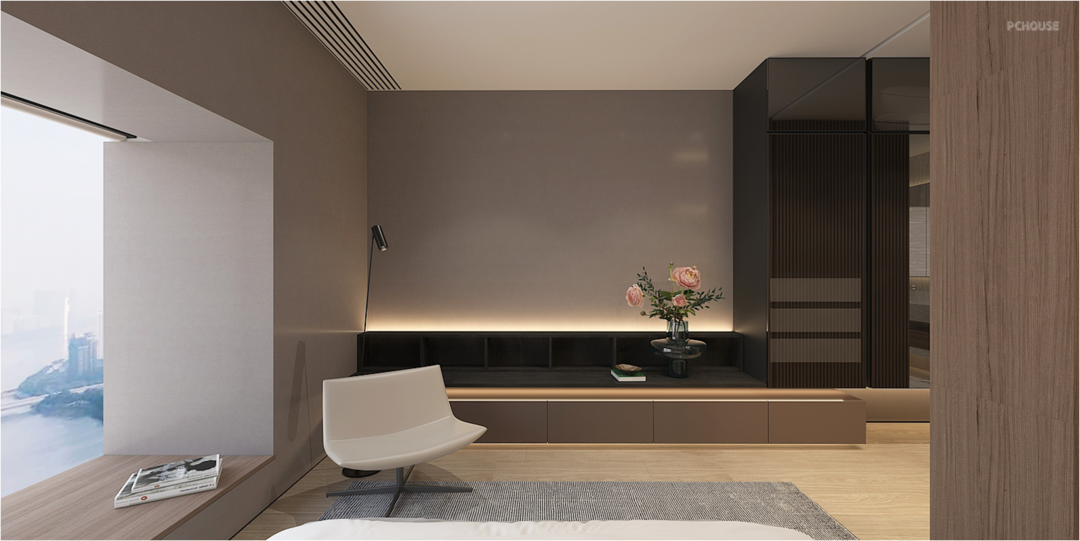 Bedrooms are not only warm, but also very convenient. In a limited space, the men’s and women’s cloak areas can be separated, which is more in line with the storage habits. The main bathroom is refreshing and comfortable, satisfying the sense of relaxation. The extra-long custom washbasin meets the actual needs of a couple living at the same time